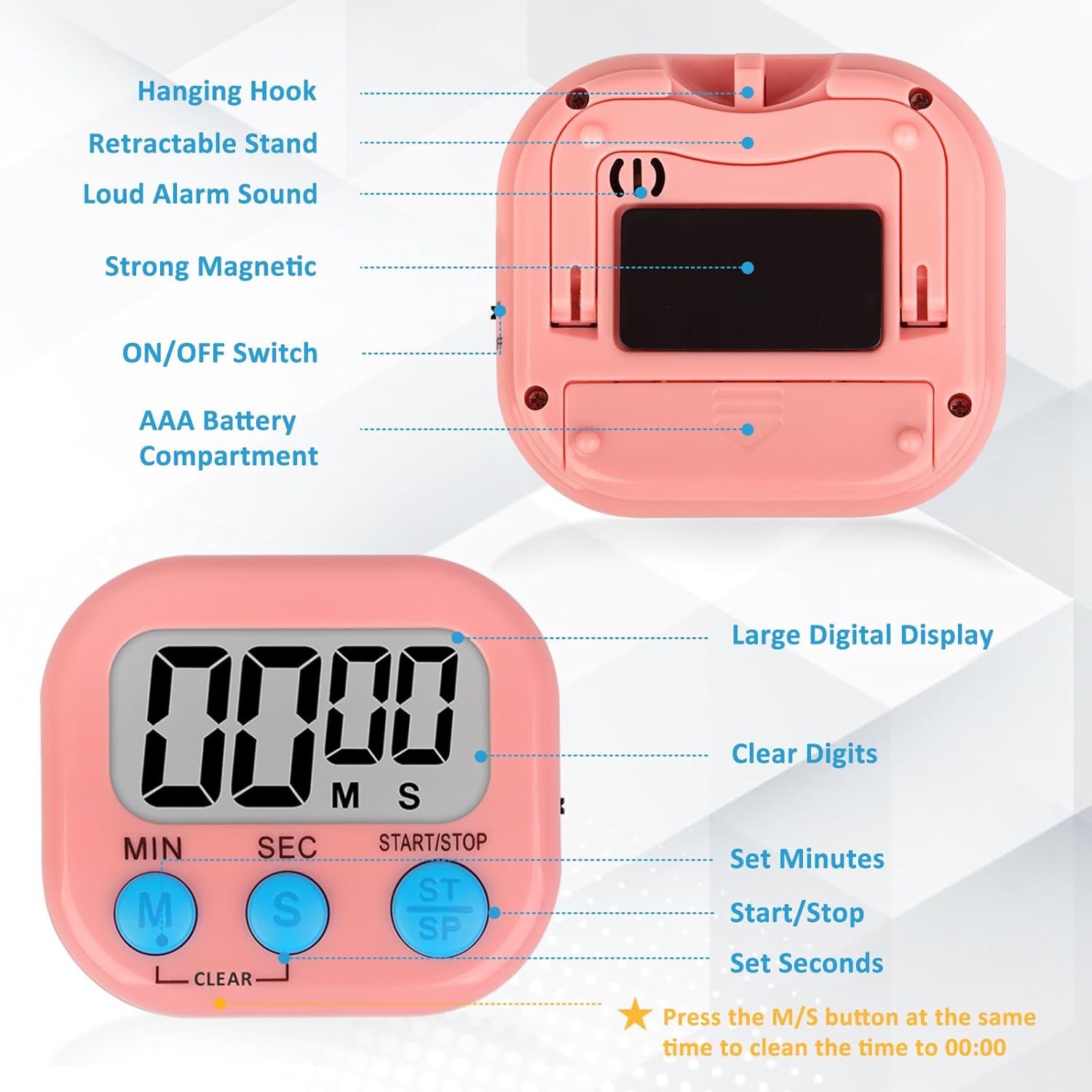 - 3 Blue & 3 Pink Timer: Measures 2.124 * 2.28 ", large screen, large numbers, easy to read.