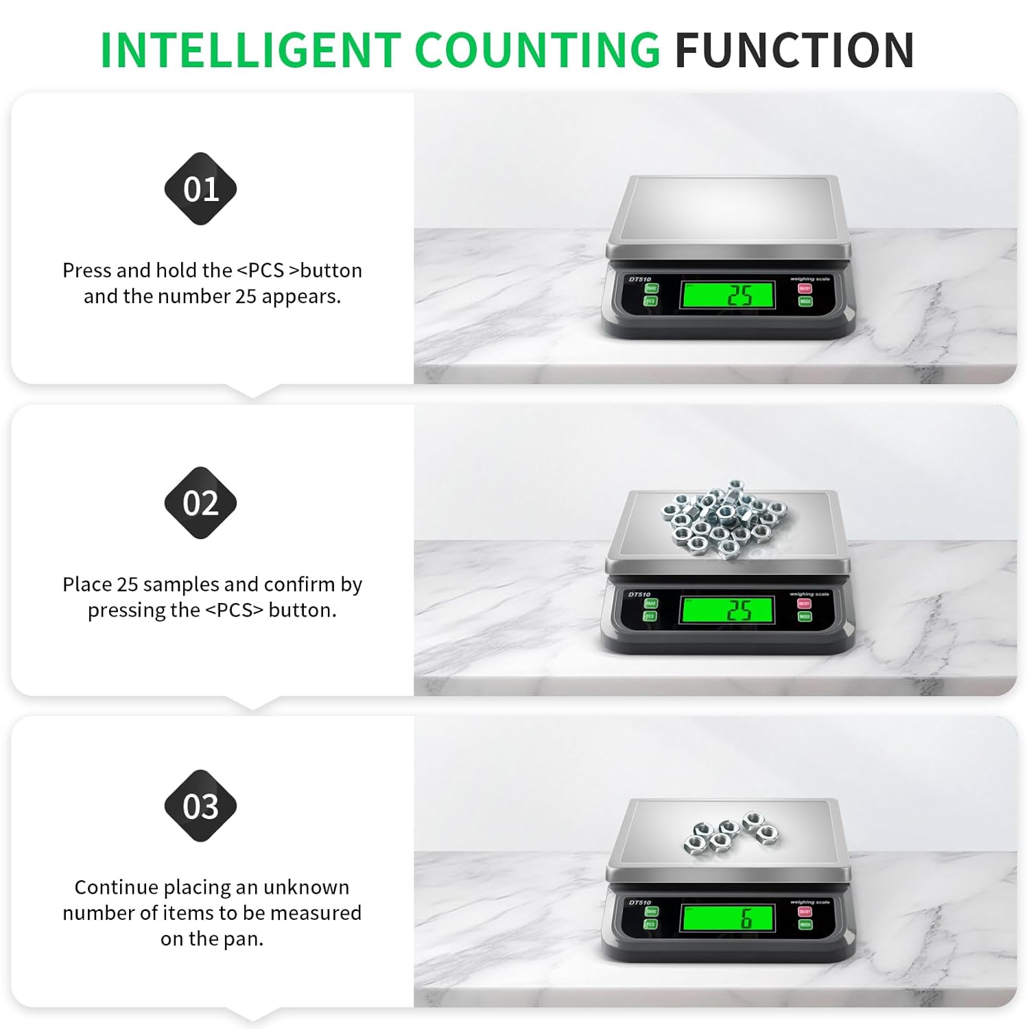 - Multifunction Scale: Easy Tare with a simple press of the tare button, you can subtract the weight of plates or containers, ensuring precise ingredient measurements. The PCS function enables small identical items counting such as pins, beads, screws.