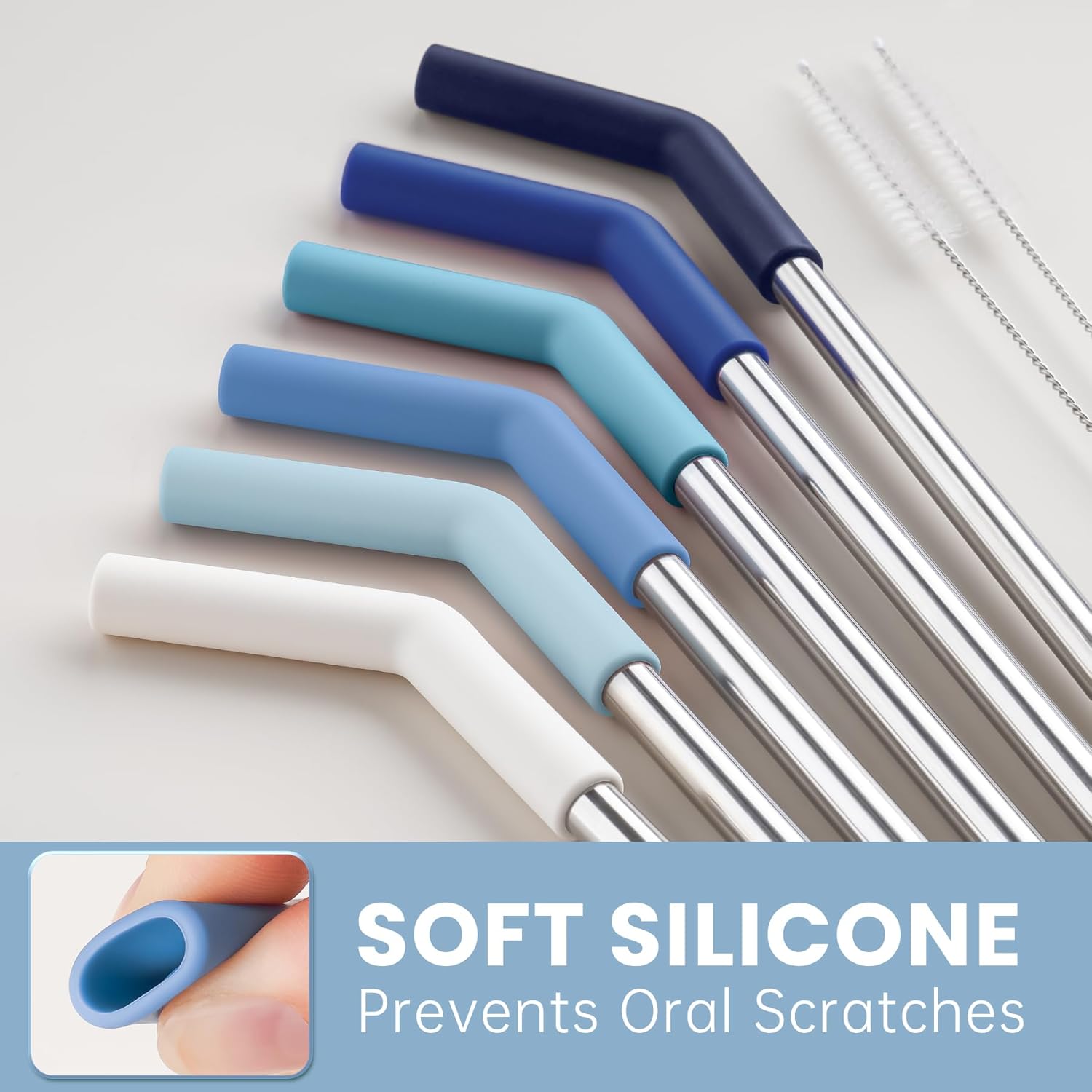 - Ocean Series Color Design: This straw set features silicone straw tips in an ocean-inspired gradient of blues, including creamy white and five varying shades of blue. Each color has been carefully selected by designers to offer more personalized options for your straw collection.