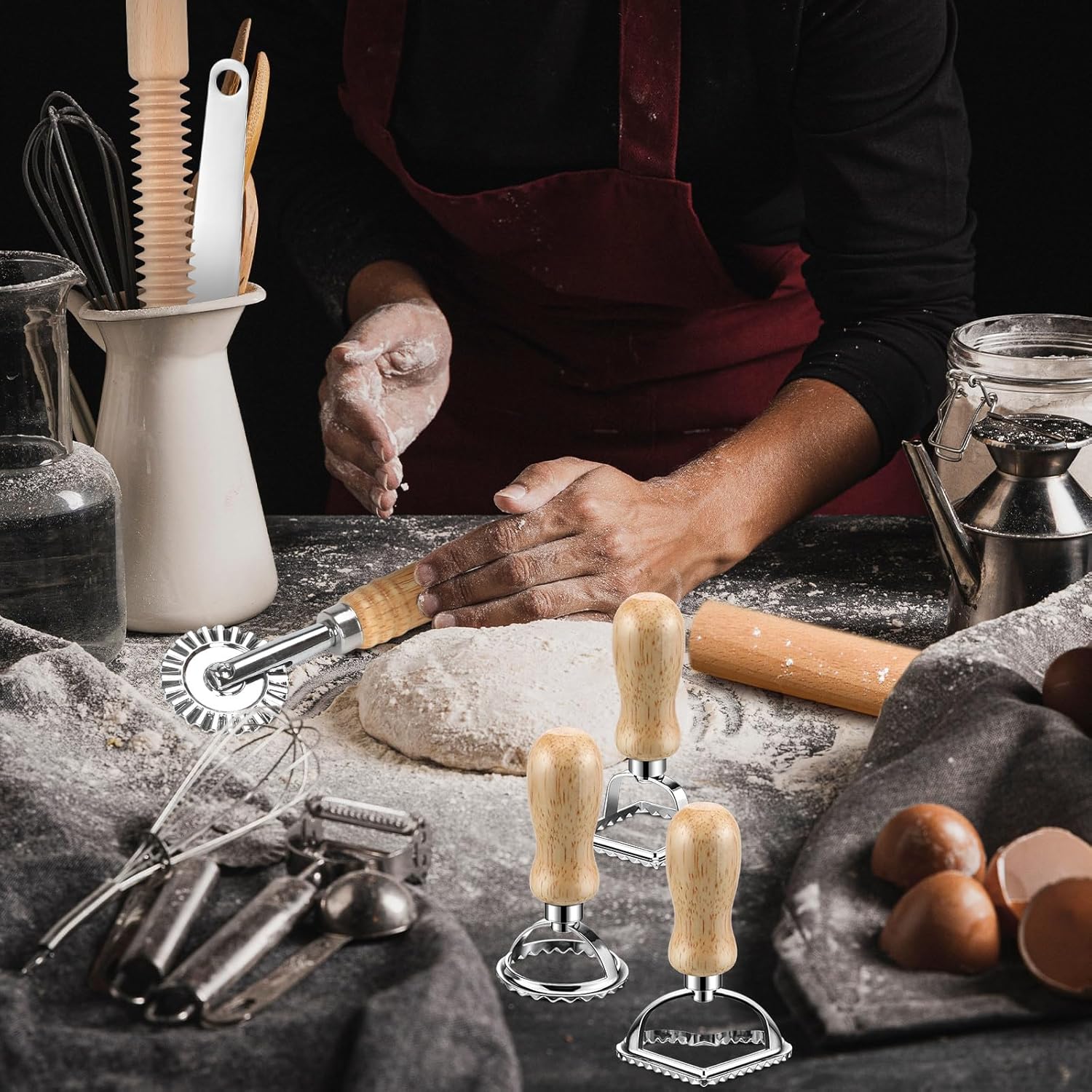 - Comprehensive Kit: Turn pasta-making into a delightful and stress-free activity with this thoughtfully designed set! It includes tools like round and square cutters, rolling tools, and dumpling stamp cutters, all user-friendly and efficient. Sprinkle flour on your work surface, place the dough, and use the tools to roll, shape, and cut perfect pasta or dumplings. Durable and easy to use, this high-quality set ensures every cooking experience is both enjoyable and rewarding