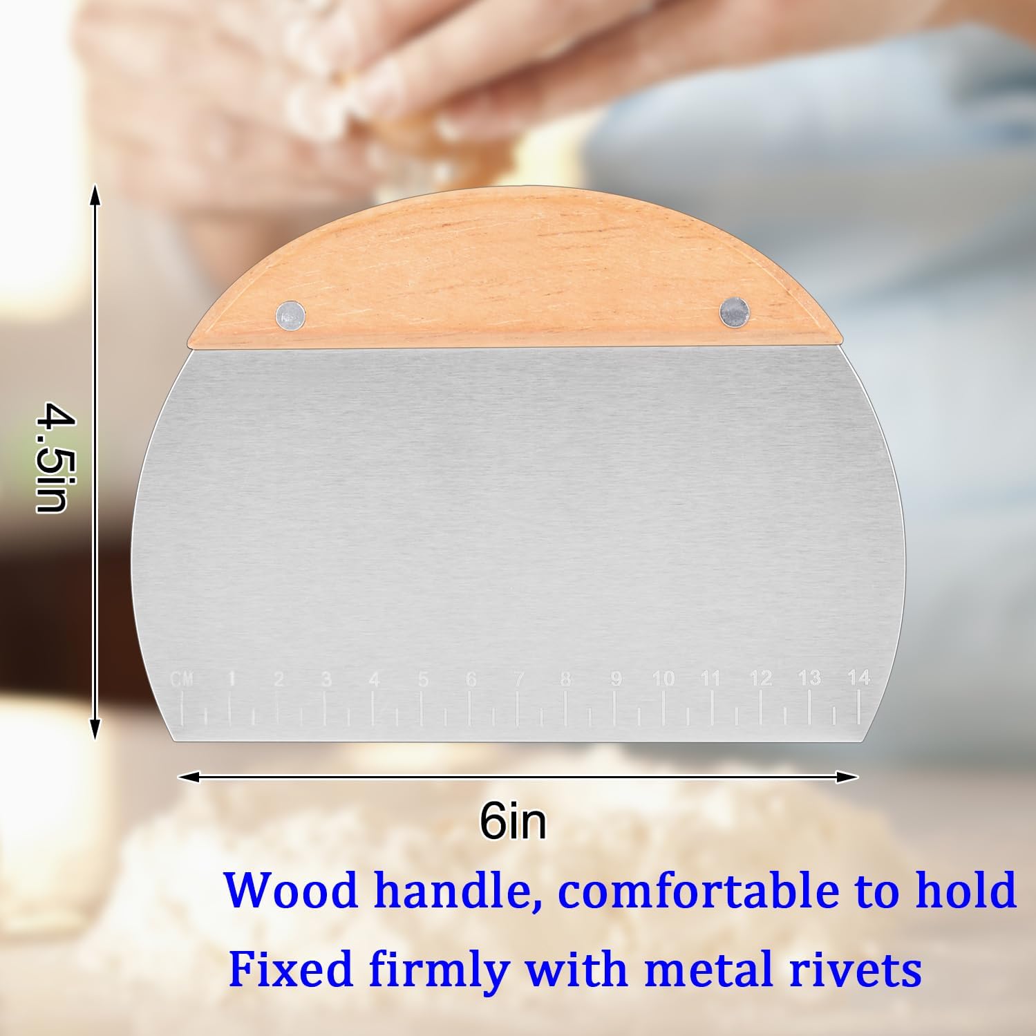 Kichwit 2 Pack 304 Stainless Steel Grill Scrapers with Wood Handle, Dough Scraper, Cake & Pizza Cutter, Multi-Purpose Scraper Tool for Kitchen