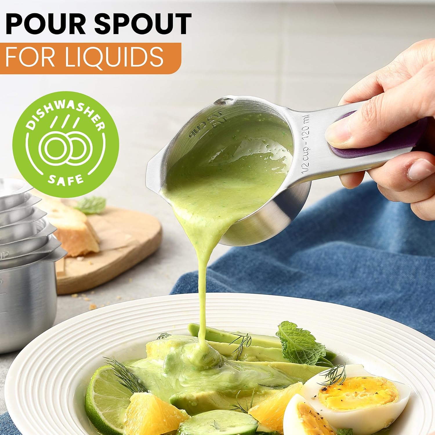 Spring Chef Magnetic Stainless Steel Measuring Cups (Patent Pending), Kitchen Tools with Easy to Read Markings for Measuring Dry or Liquid Ingredients, Set of 7, Multicolor