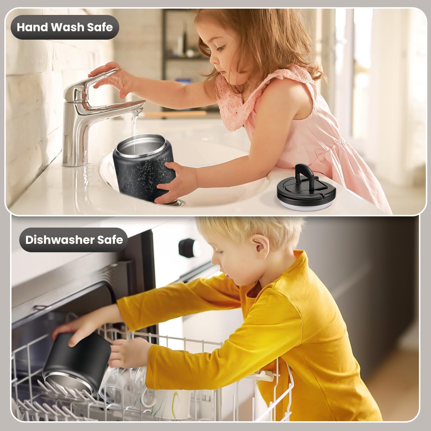 - Leak Proof Design: The compression vacuum design with seal washer guarantees 100% leak-proof, the hidden handle and hidden folding spoon are designed for easy opening and carrying. Don't worry about it spilling out and messing up kids lunch bag.