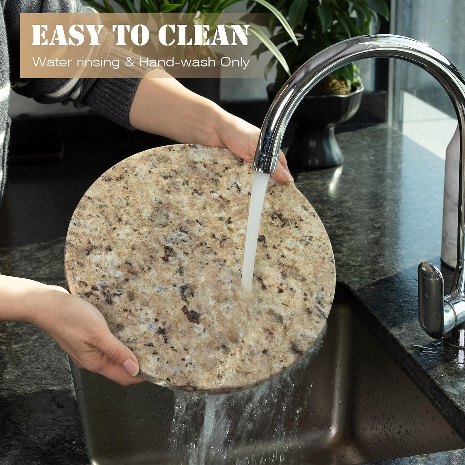 - Built for Daily Use – Durable & Knife-Friendly The board’s dense marble construction resists scratches and wear, ensuring long-term use. Its sturdy surface protects your knives while offering the stability needed for precise cutting.