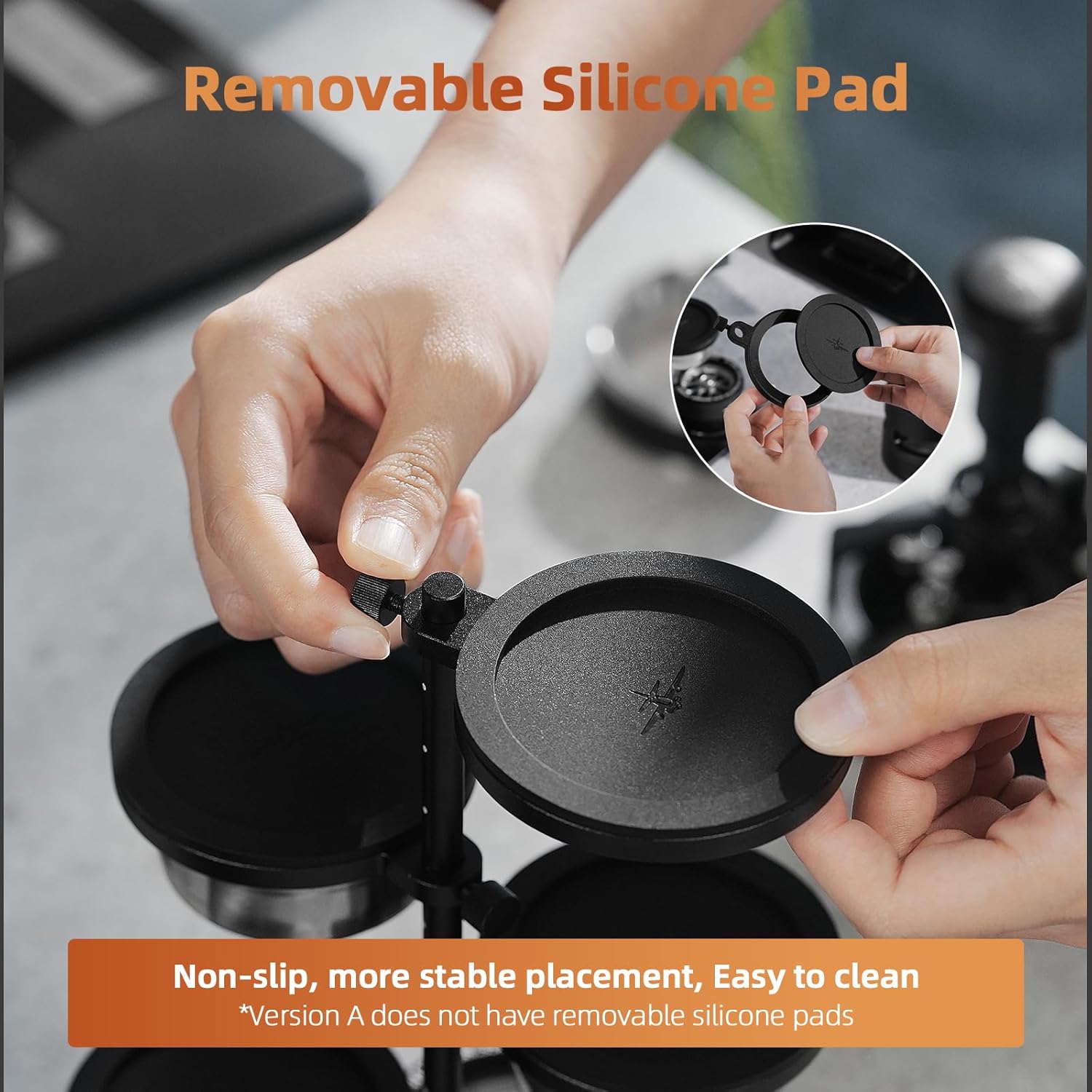 - Magnetic Suction:The espresso storage holder has 12 magnets that can easily attach the stainless steel filter basket. And during installation, the side with the magnet can be facing up or down according to your needs.Compared to the basic model, the detachable silicone pad has been added. It also provide a place for storing dosing ring, cups, etc.
