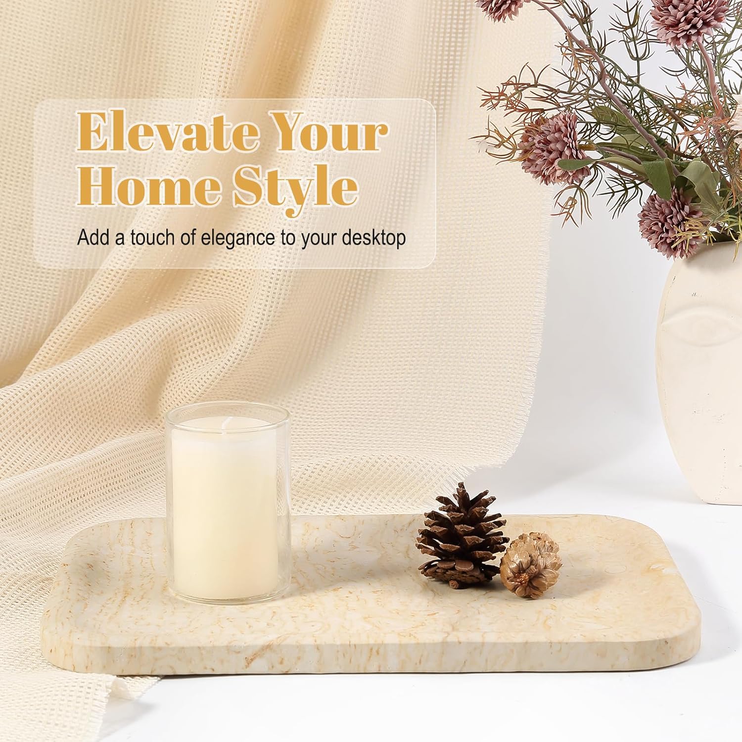 Koville Marble Tray, 12"x8" Marble Vanity Tray for Bathroom Kitchen Countertop, Rectangular Stone Tray for Cosmetics Perfume Trinket, Decorative Catchall Trays (Beige)