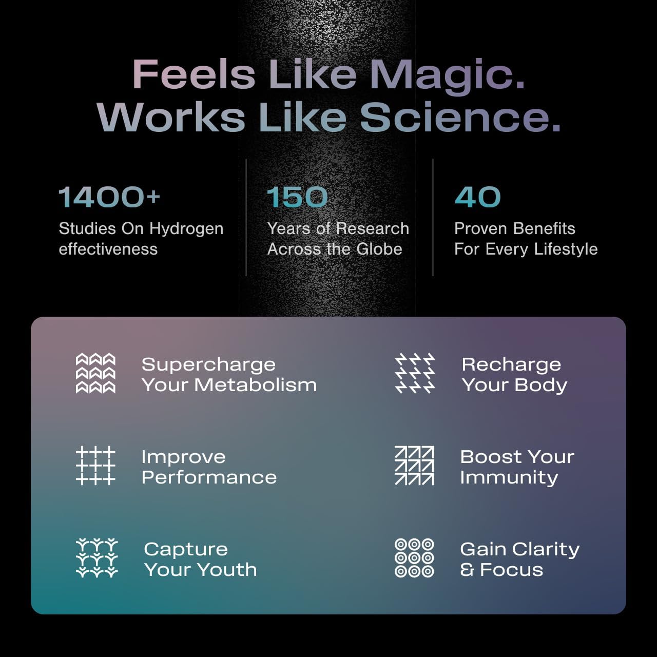 - Active Hydration Solution: From pure hydrogen production to adjustable hydrogen levels, the Echo Flask ensures high-quality water, helping you perform better, feel stronger, and think clearer each day