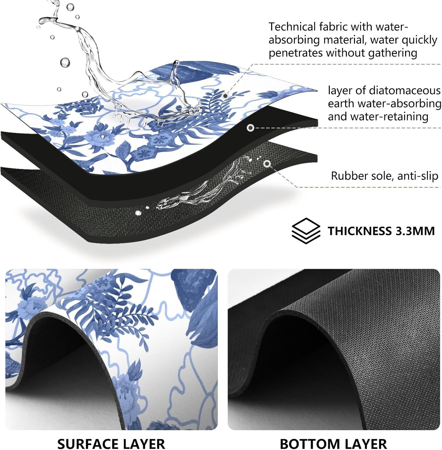 - Super Absorbent: The front side of the kitchen counter mats is made of a super absorbent material that is incredibly absorbent, allowing it to quickly soak up any spills or moisture. Whether you're drying dishes, wiping down countertops, or cleaning up after a coffee brewing session, this mat will effectively absorb liquids, keeping your kitchen clean and dry.