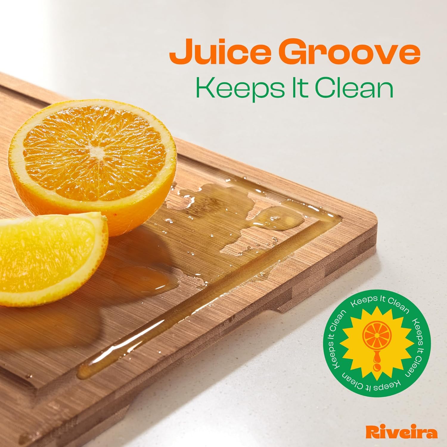 Riveira Brown Bamboo Wood Cutting Board – Gourmet Bamboo Grandeur: 36 x 24 Wooden Cutting Board – Wooden Cutting Boards For Kitchen Decorative – Innovative Juice Grooves Wooden Chopping Board