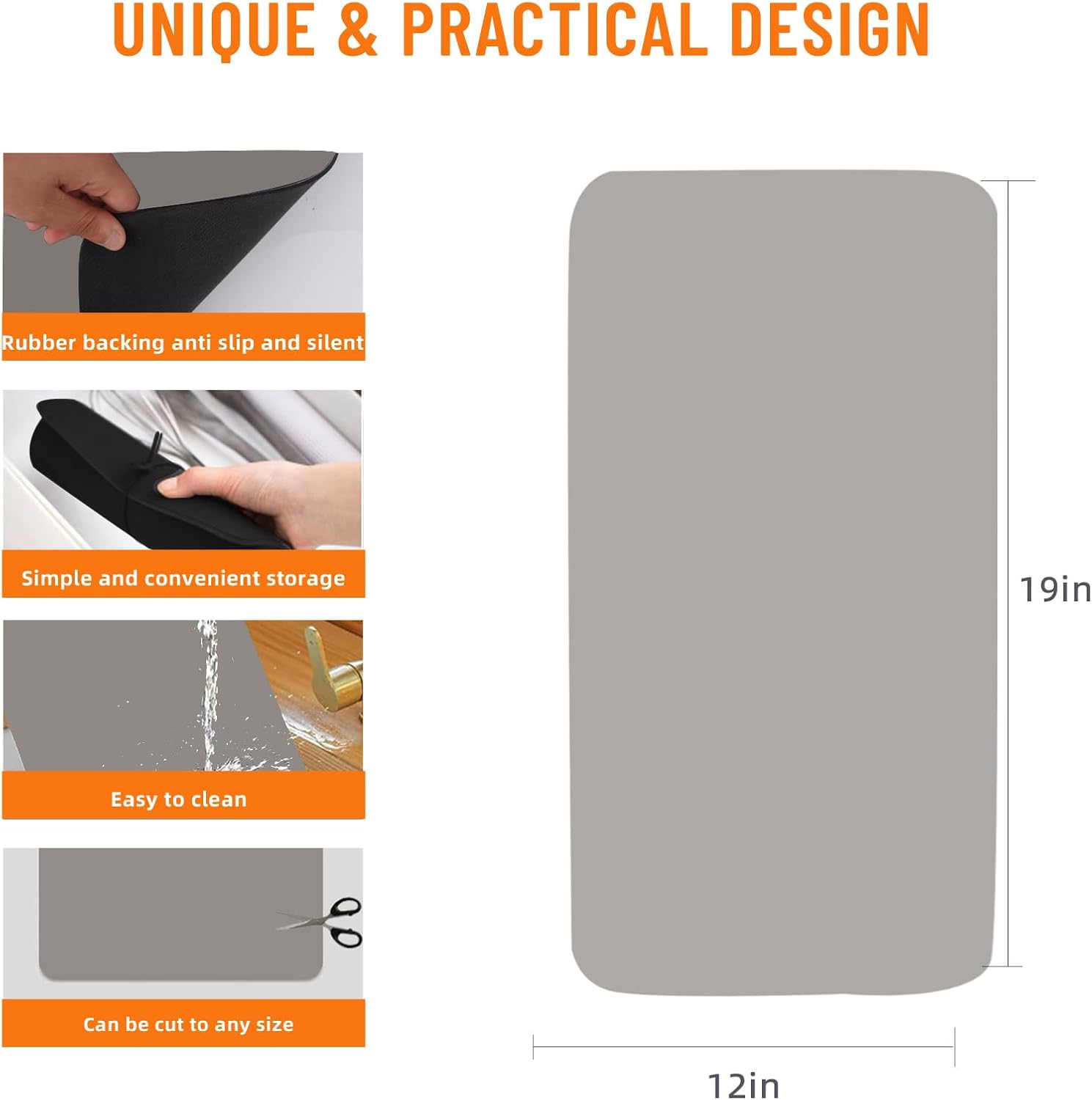 - Rubber Backing Anti Slip and Silent:The dish mat drying kitchen mat has a silent and anti slip effect,Keep the coffee maker quiet while working,the anti-slip rubber backing can firmly grip the countertop without unwanted sliding.