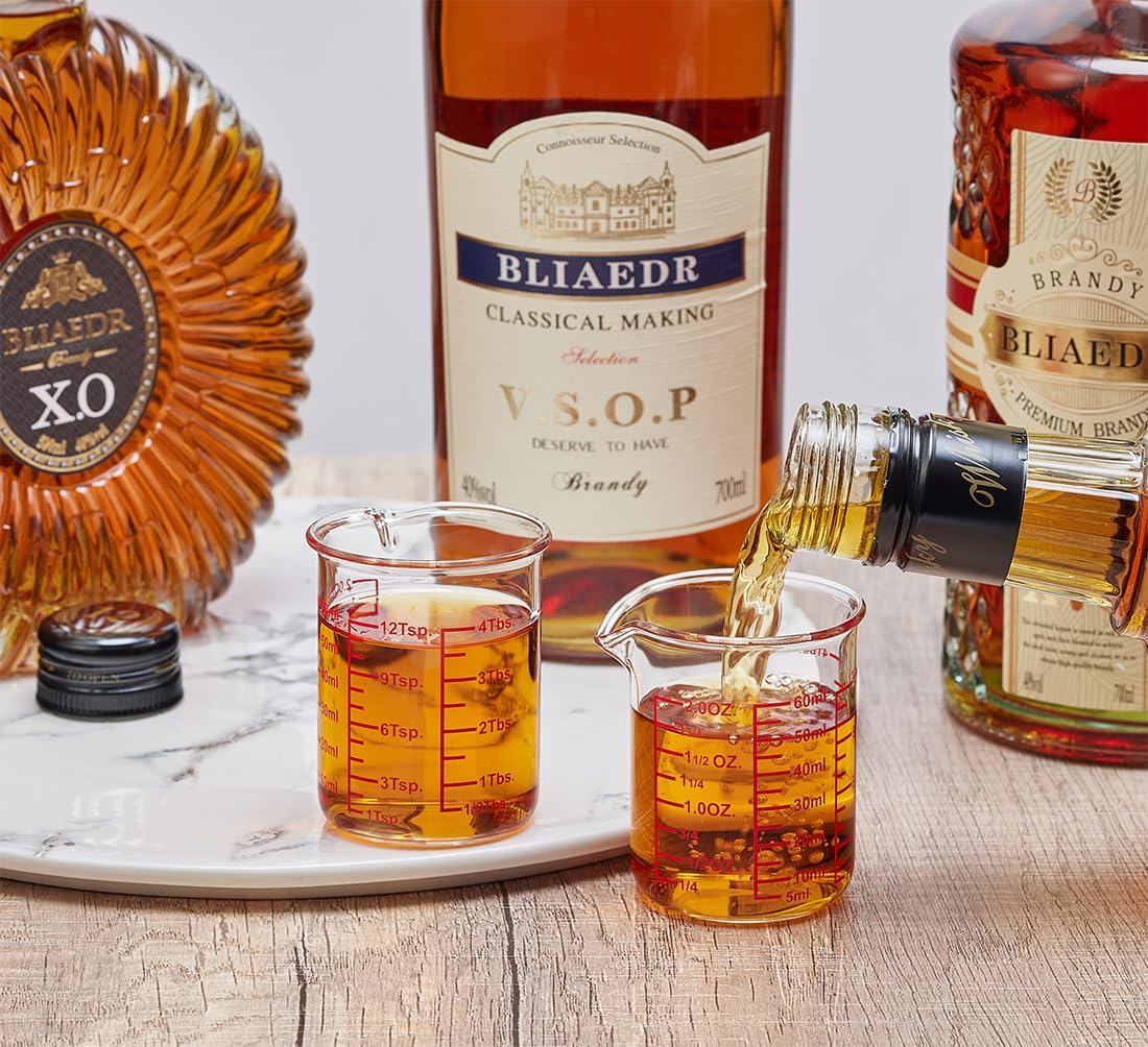 High Borosilicate Glass Measuring Cup-V-Shaped Spout,Glass Measuring Beaker for Kitchen or Restaurant, Easy to Read, 60 ML (2 Oz)-Pack of 2