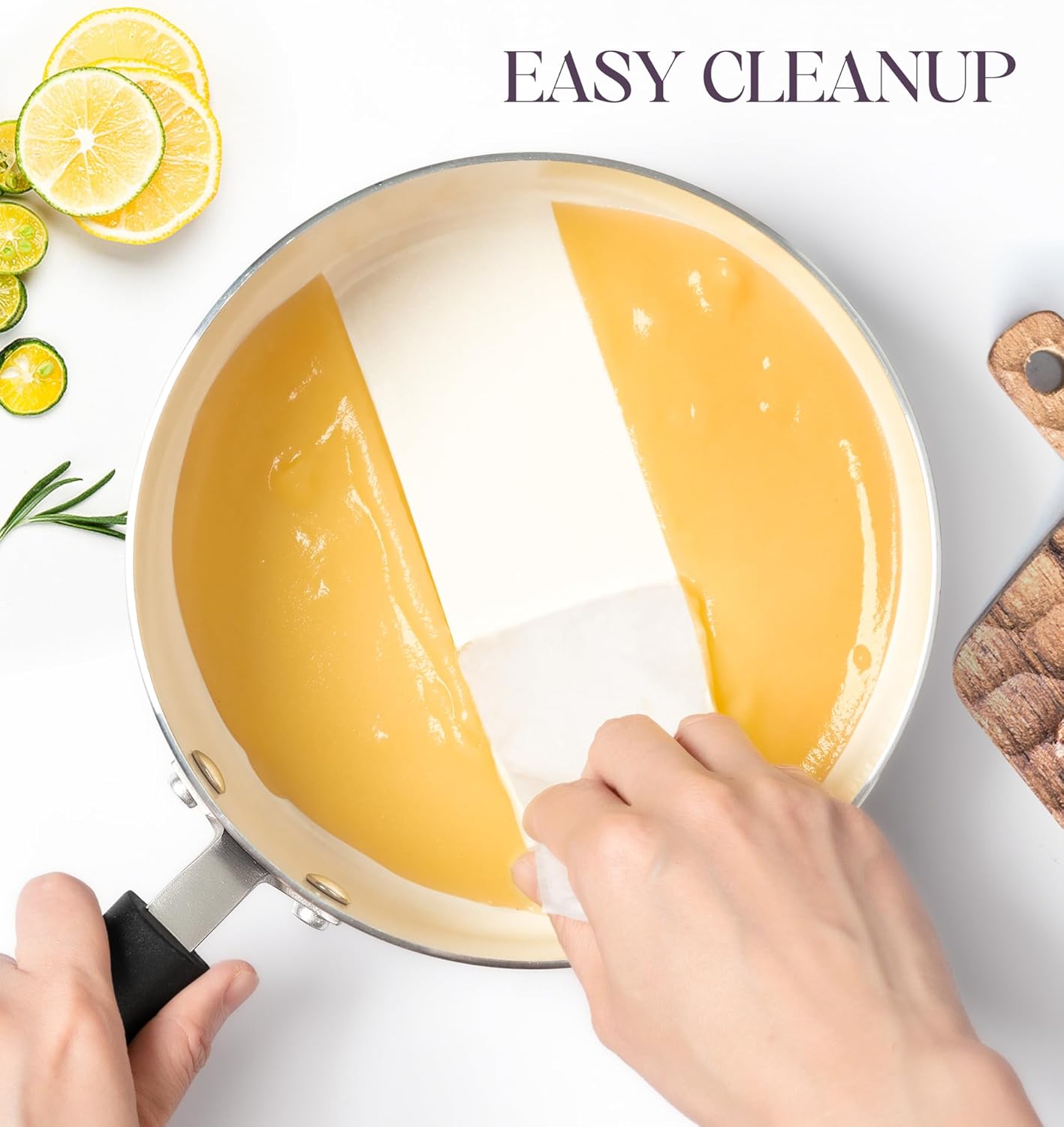 - CLEAR GLASS LID – The ceramic sauce pan with lid that lets you monitor cooking progress without lifting the lid, helping retain heat, moisture, and flavor.