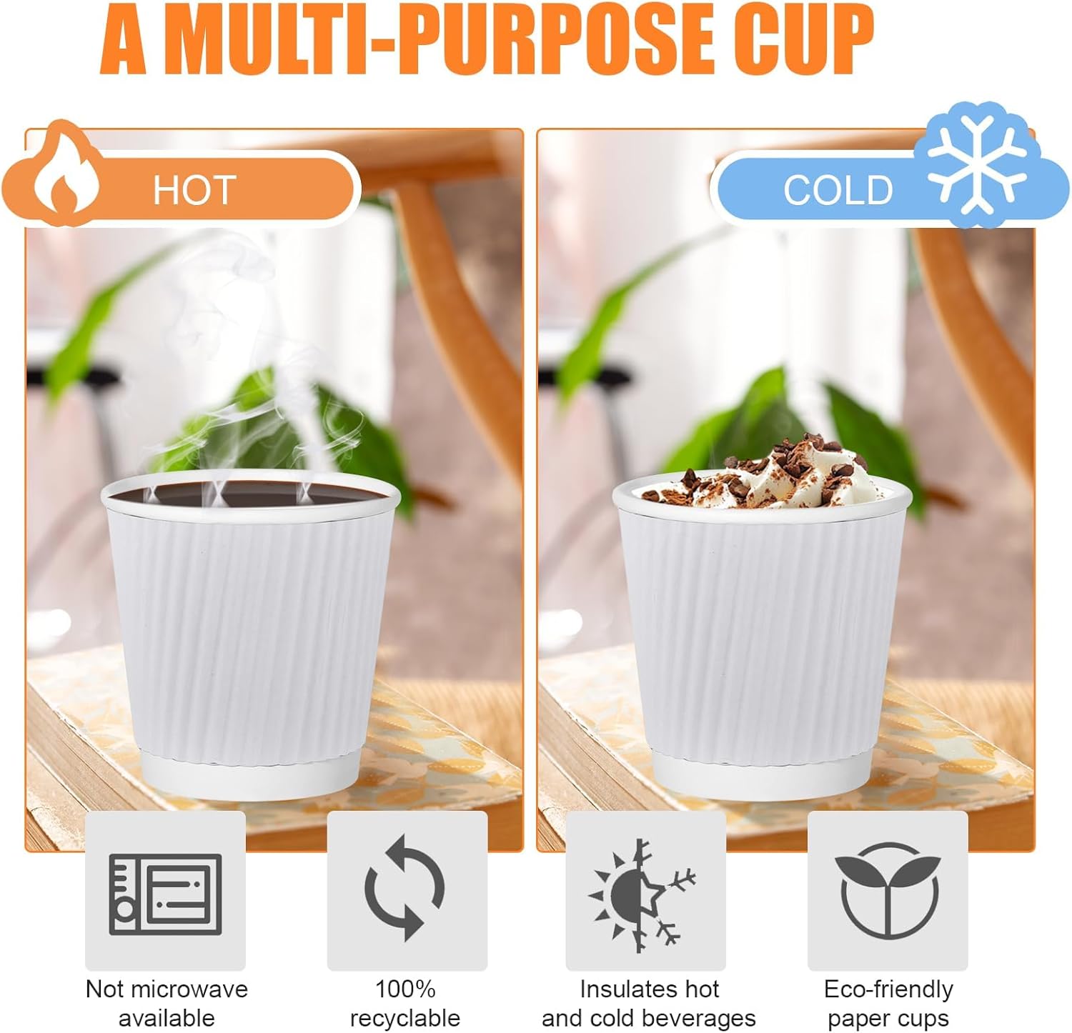 500 Pack Paper Espresso Coffee Cups,4 oz Disposable Coffee Cups,Corrugated Insulated Ripple Wall, Paper Ripple Cup for Coffee, Hot Chocolate and Hot Tea Drinks -White