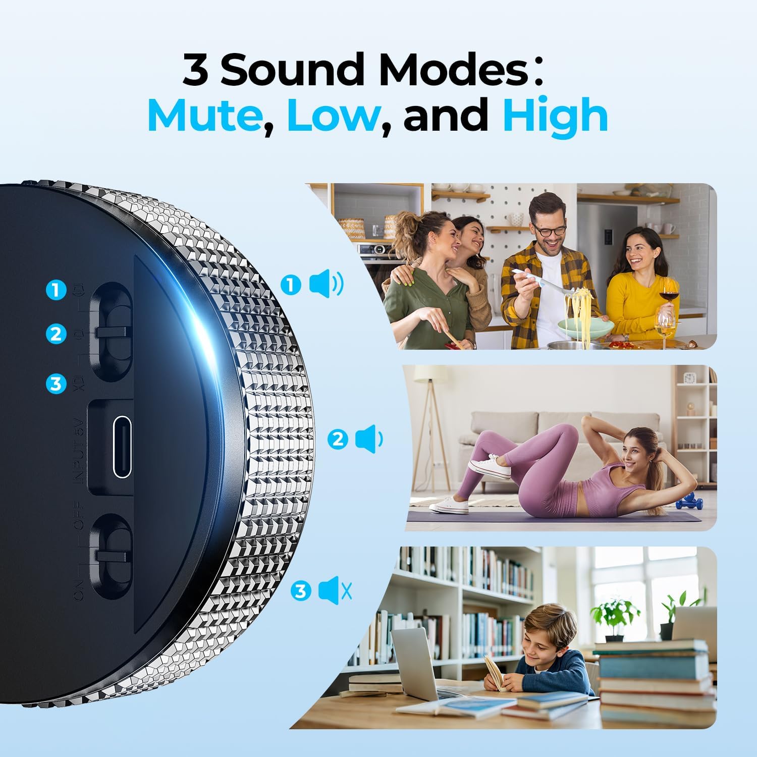 - 【Simple & User-Friendly Operation】: No more struggling with small buttons—just rotate the outer ring to set the time and press the button to start or stop. Choose from 3 volume levels: Mute (0 dB), Medium (60-75 dB), and High (80-90 dB) to suit your environment. The alarm can easily be heard across the room.