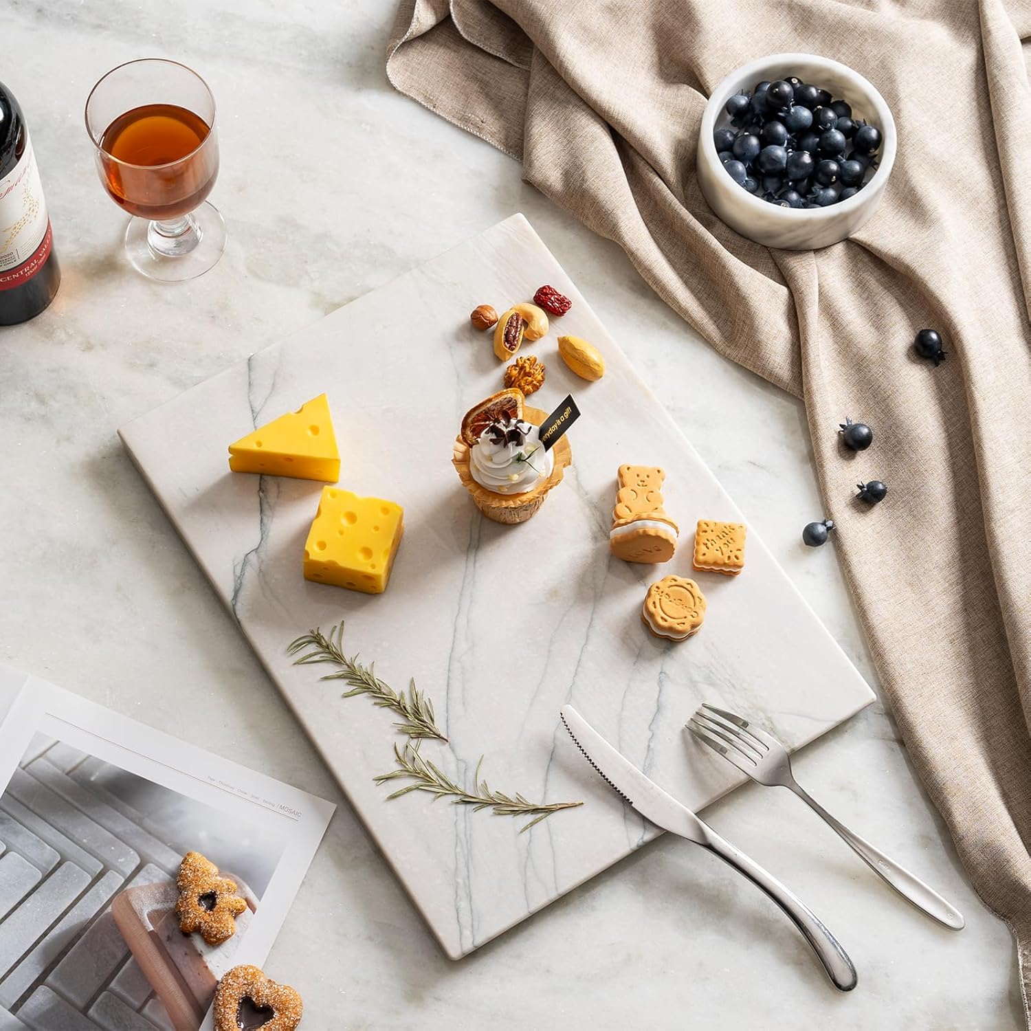 Koville Marble Pastry Board Cutting Boards for Kitchen Counter, 16" x 12" Natural White Marble Cutting Board Cheese Board, Stone Charcuterie Slab, Heat Resistant Rectangular Serving & Chopping Slab