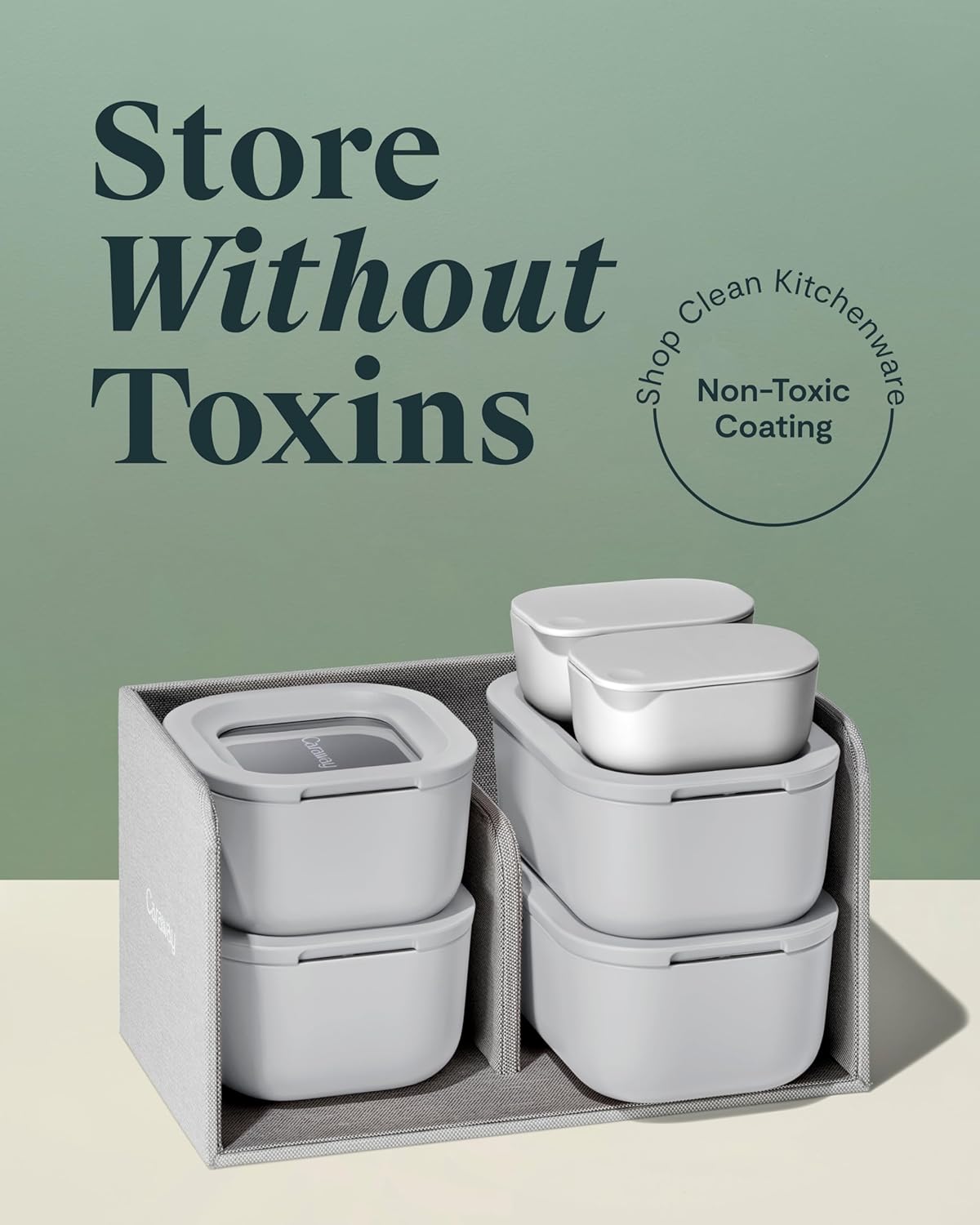 - NON-TOXIC & ECO-FRIENDLY MATERIALS: With a ceramic-coated surface, these containers are free from BPA, PFAS, and other harmful chemicals, ensuring safe and sustainable food storage.