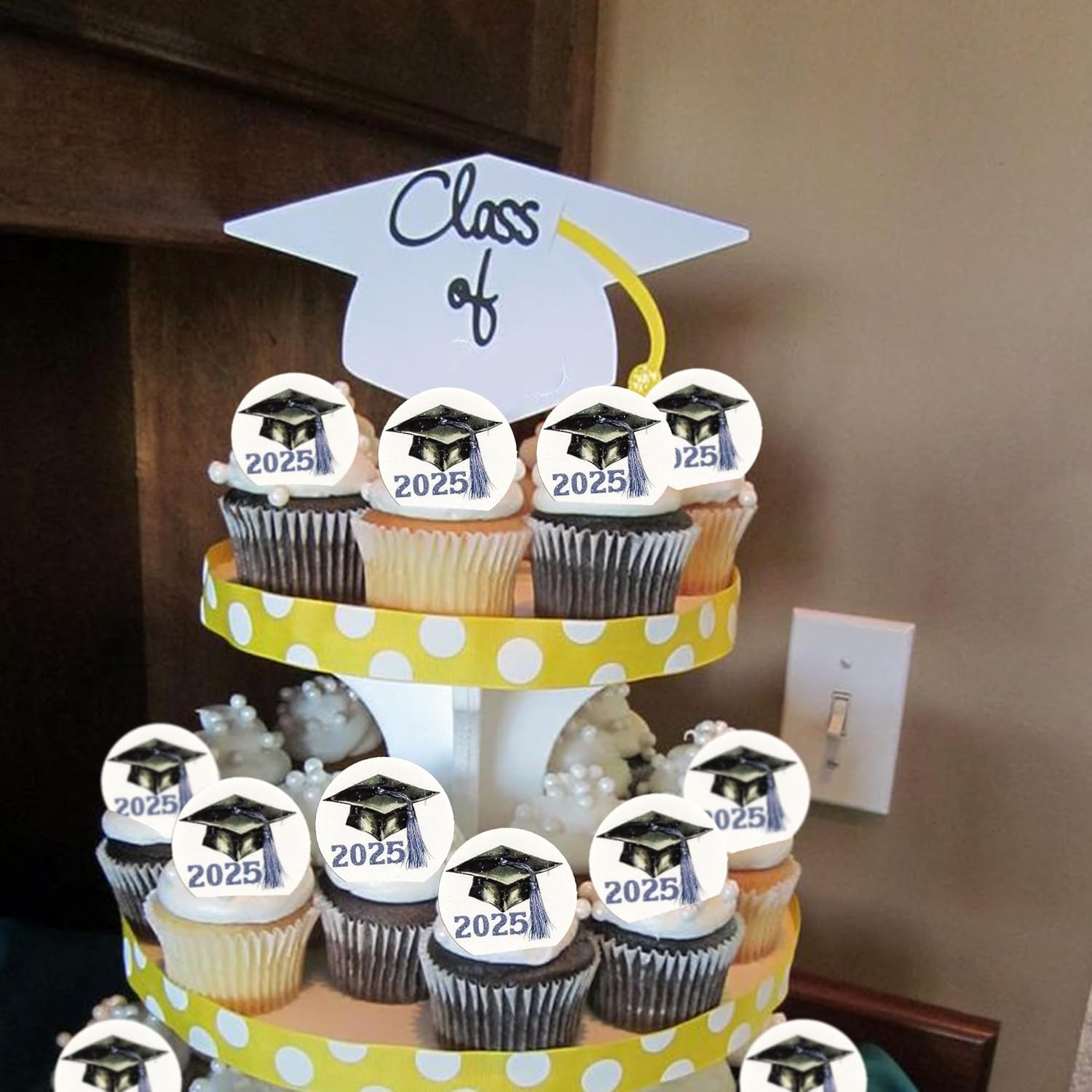 - -Package included: 48Pcs Edible 2025 Grad Cap Cupcake Toppers. These Edible 2025 Grad Cap Cupcake Toppers are so chic and funny that make your graduation 2025 theme party a big hit.