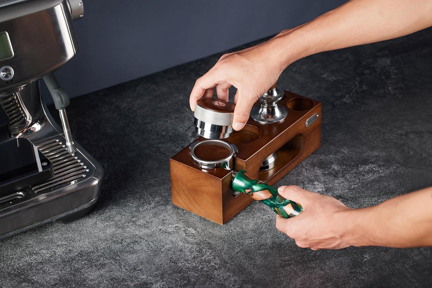 54mm bottomless portafilter for Breville Barista Express(BES870) Pro Touch Bambino Infuser Duo Temp Espresso Accessories Includes Naked Basket Stainless Steel resin green