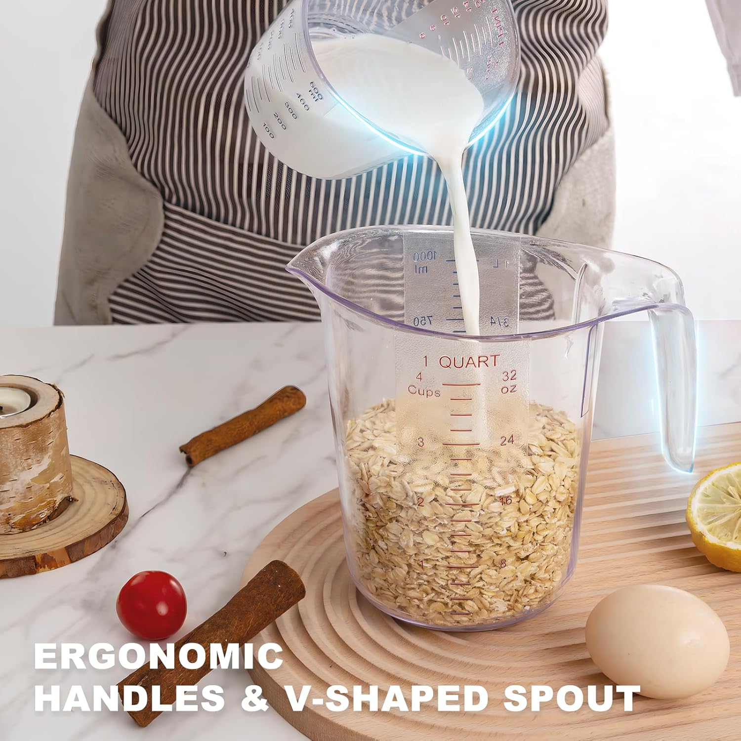 - EASY-TO-READ & PRECISE MARKINGS: Clear measuring cup set bold high-contrast markings in both cups, ounces, and milliliters ensure quick, accurate measuring at a glance—no squinting! Available in 1/2/4/8cup sizes to cover all your measuring needs