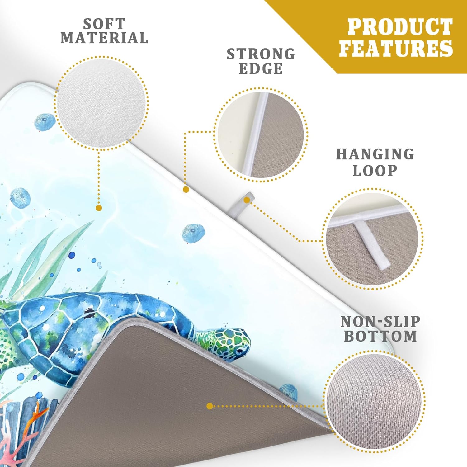 Giwawa Sea Turtle Dish Drying Mat 18x24in Watercolor Blue Tortoise Dish Drainer Mats Nautical Ocean Coral Seashell Seaweed Microfiber Dish Drying Pad for Kitchen Countertop Large Decor