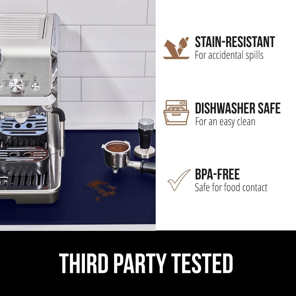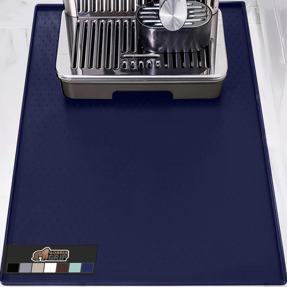 GORILLA GRIP Silicone Coffee Mat, 18x28, Espresso Drink Bar Station Accessories, Waterproof Heat-Resistant Dish Drying Mats, Stay in Place on Kitchen Counter, Home Kitchen Decor Essentials, Navy