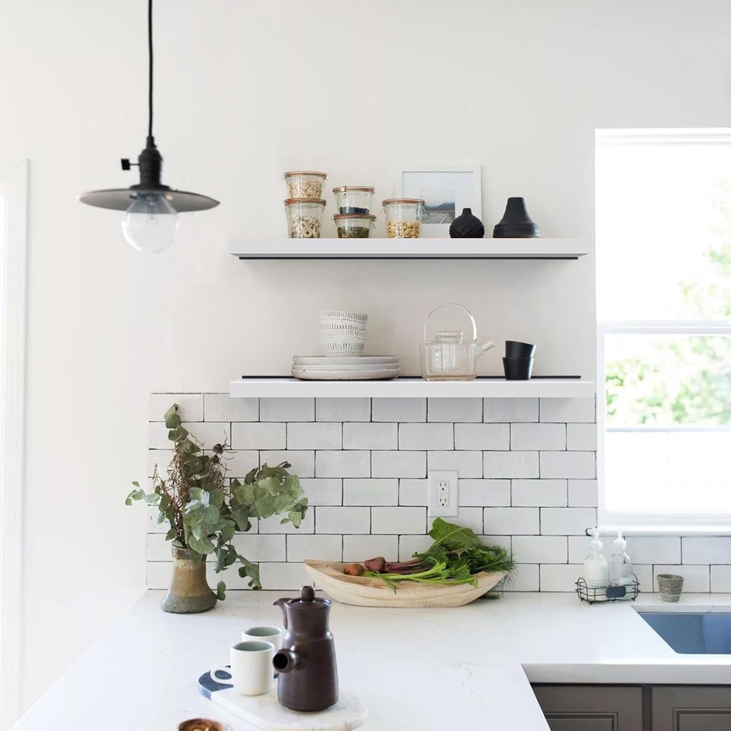 Meangood Floating Shelves White 17 inch Wall Mounted Natural Bamboo Wood Wall Storage Shelves for Bedroom,Living Room,Bathroom, Kitchen(Set of 2)