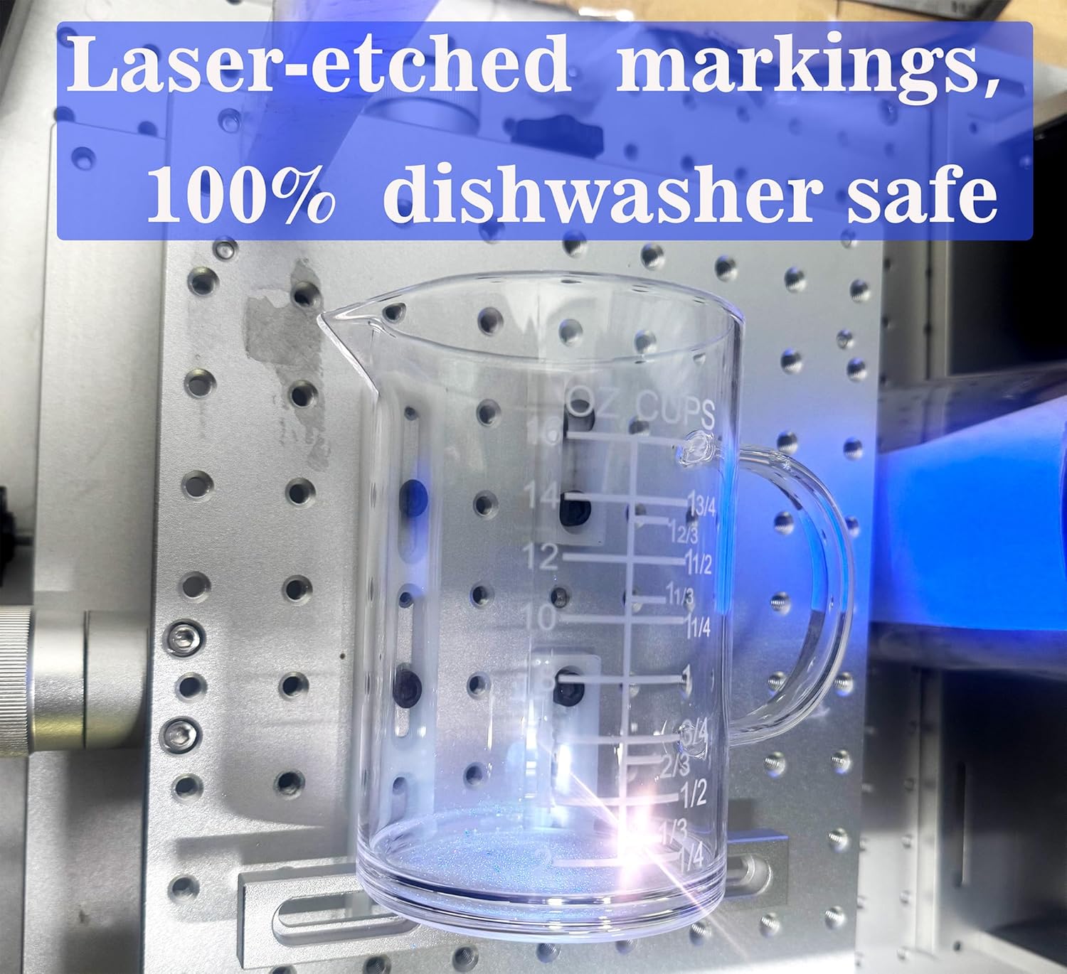 - 【Etched Graduations】: The measuring cup features etched graduations in three units (Cup, ml, OZ). The front of the handle displays US Cups and OZ measurements, while the back shows ML measurements for precise work. This ensures you can measure all types of liquids and follow any recipe with ease. It is 100% dishwasher safe, allowing you to trust it for hassle-free cleaning