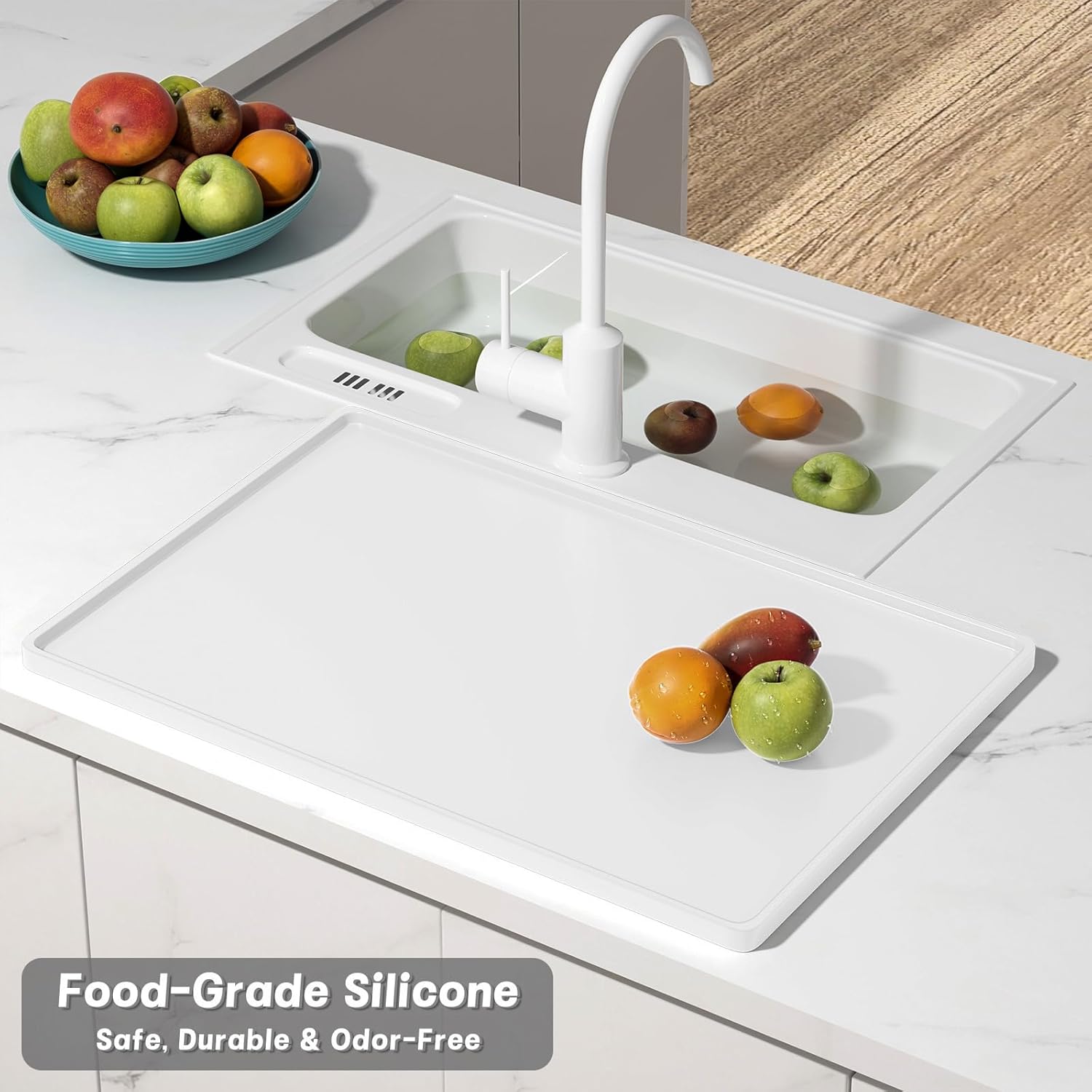 Rnivvi Silicone Coffee Mat, 16" x 24" Waterproof Raised Edge Coffee Bar Mats for Espresso Machine Station Accessories, Heat Resistant Dish Drying Pad for Kitchen Counter, Rubber Bar Decor Pad, White