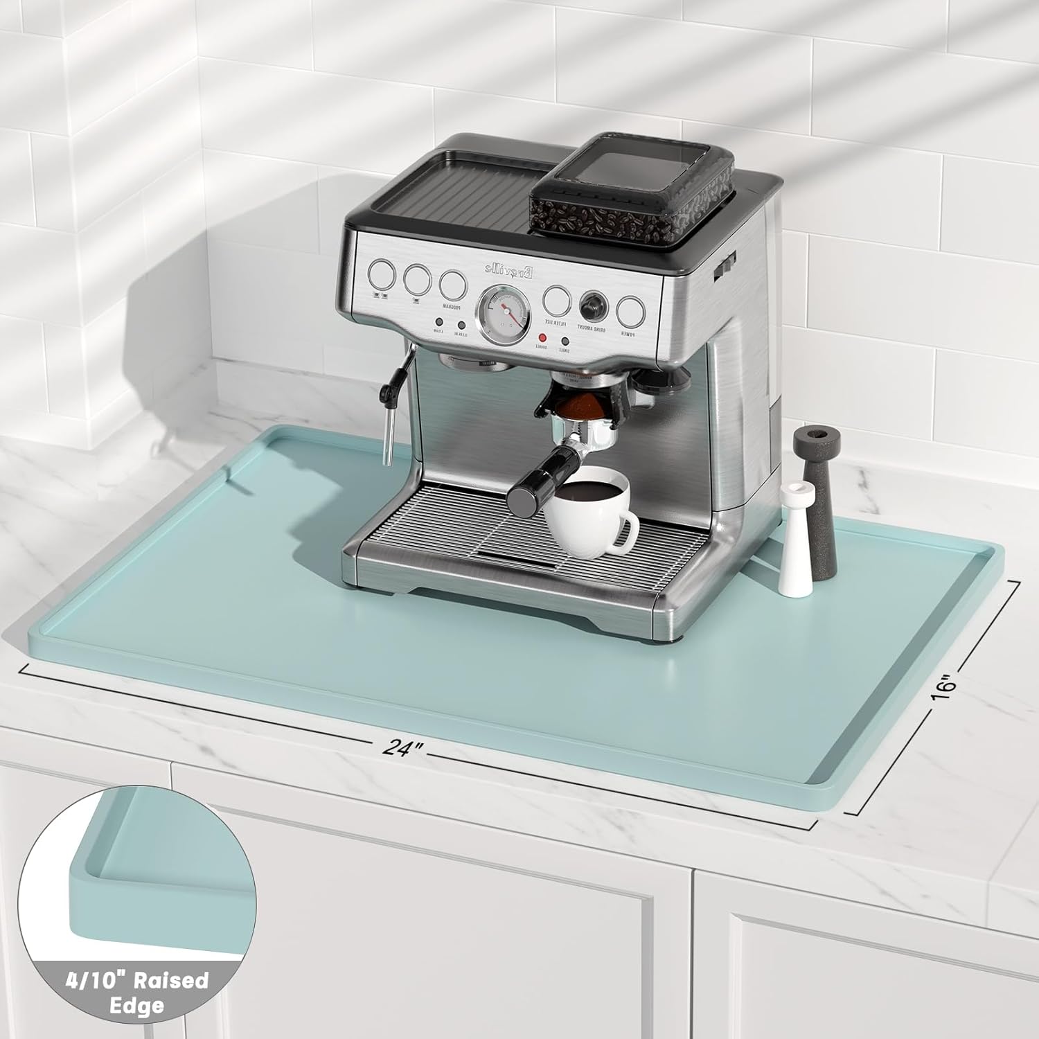 - Multi-Use Silicone Mat for Coffee & Kitchen: Fits 16"x24" espresso machines (Breville/De'Longhi). Use as pet food mat, blender pad, or dish drying mats for kitchen counter. A barista-approved essential for homes, cafes, and RVs – where mess meets style