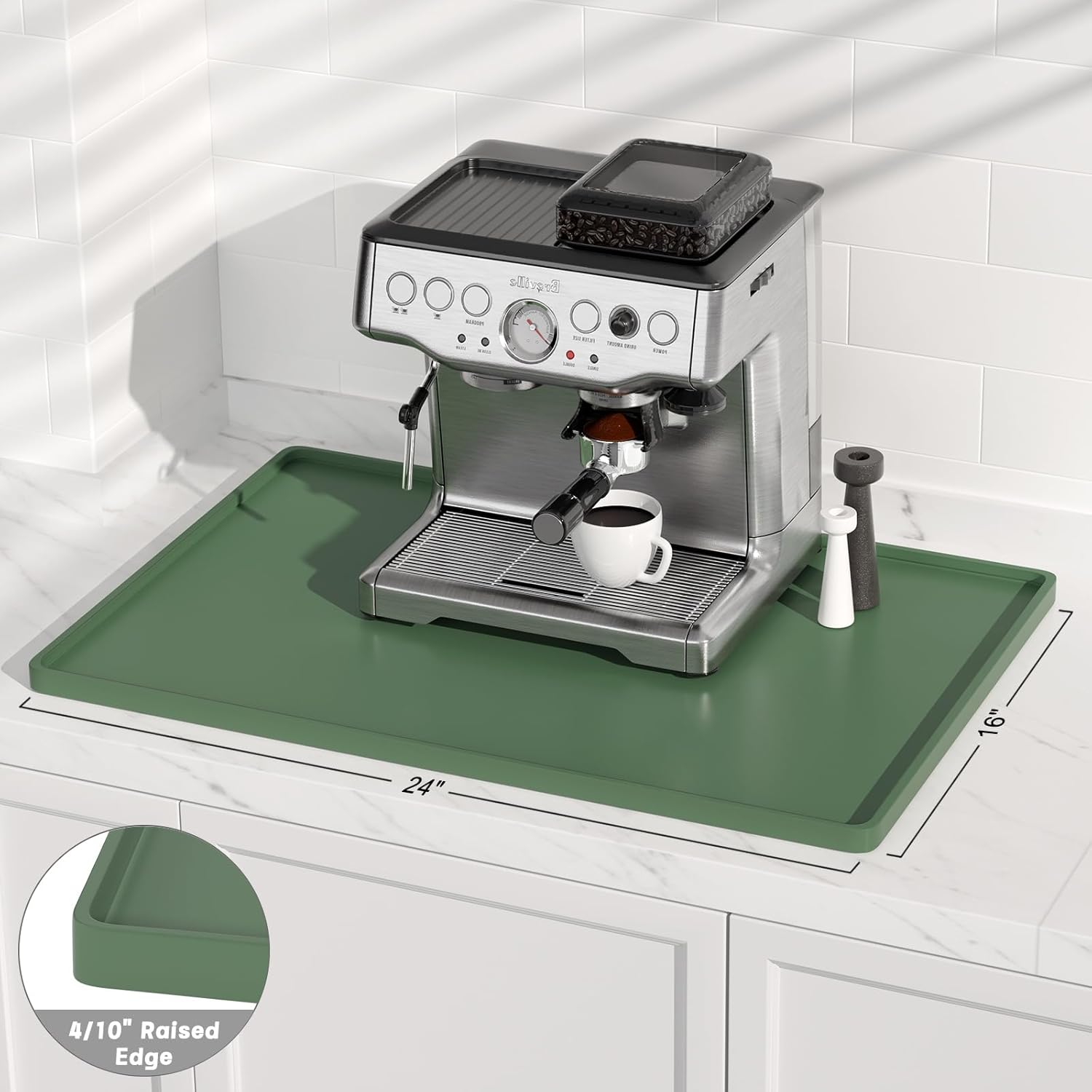 Rnivvi Silicone Coffee Mat, 16" x 24" Waterproof Raised Edge Coffee Bar Mats for Espresso Machine Station Accessories, Heat Resistant Dish Drying Pad for Kitchen Counter, Rubber Bar Decor Pad, Green