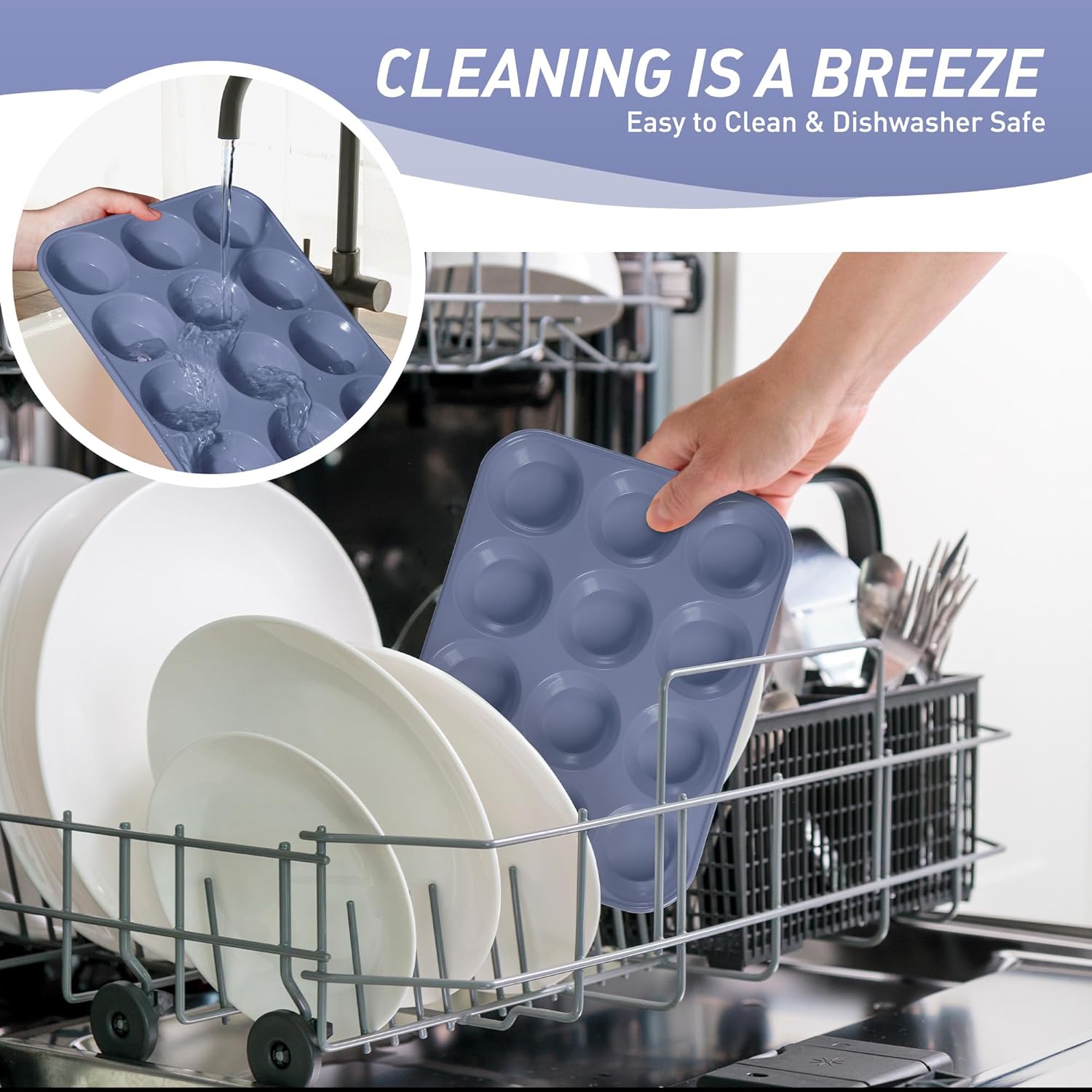 - Effortless Release Every Time: The baking cupcake muffin pans features a smooth, nonstick surface that releases baked goods with just a gentle push from the bottom - no messy greasing or stubborn sticking. After baking, simply place the entire baking cupcake muffin pans in the dishwasher for effortless cleaning. Compared to traditional metal baking cupcake muffin pans, our high-quality silicone material resists oil absorption, reducing residue buildup by 85% for quicker, simpler cleanup.