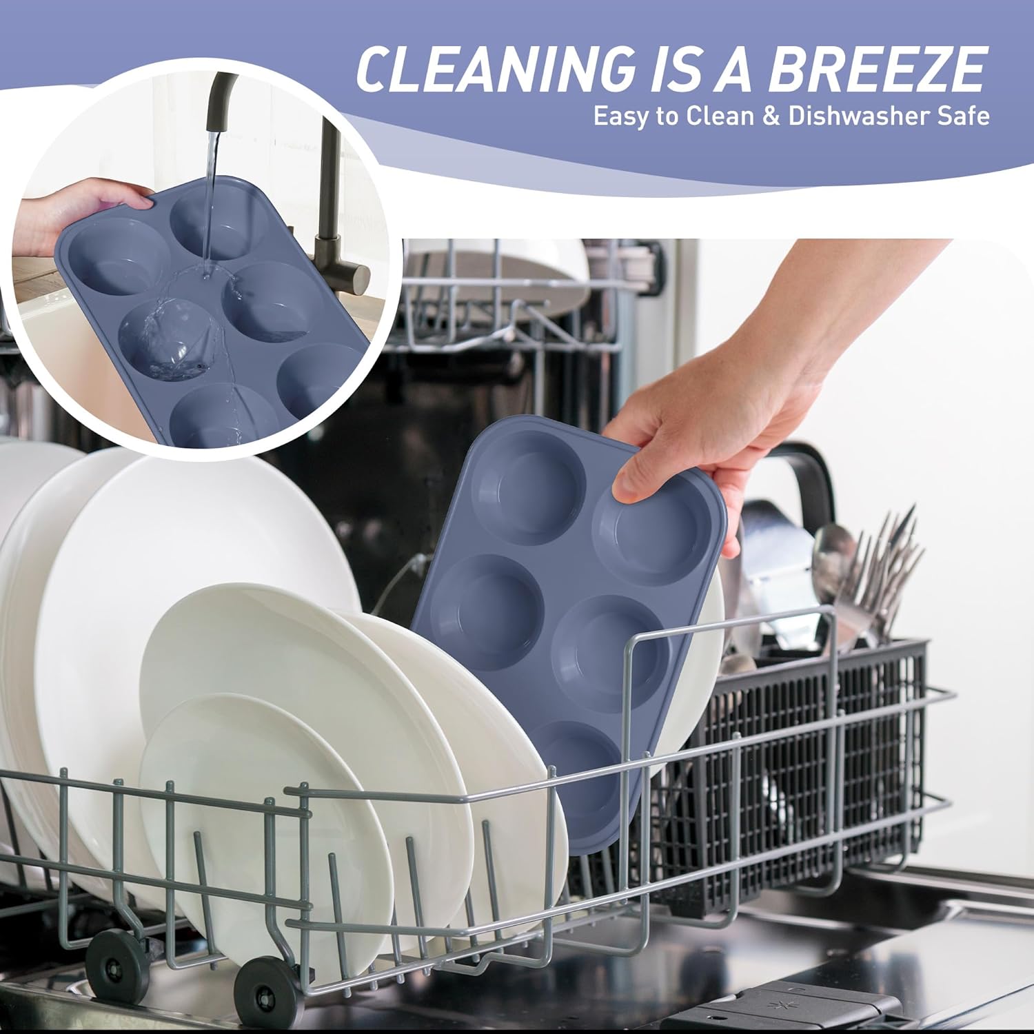 - Effortless Release Every Time: The baking cupcake muffin pans features a smooth, nonstick surface that releases baked goods with just a gentle push from the bottom - no messy greasing or stubborn sticking. After baking, simply place the entire baking cupcake muffin pans in the dishwasher for effortless cleaning. Compared to traditional metal baking cupcake muffin pans, our high-quality silicone material resists oil absorption, reducing residue buildup by 85% for quicker, simpler cleanup.