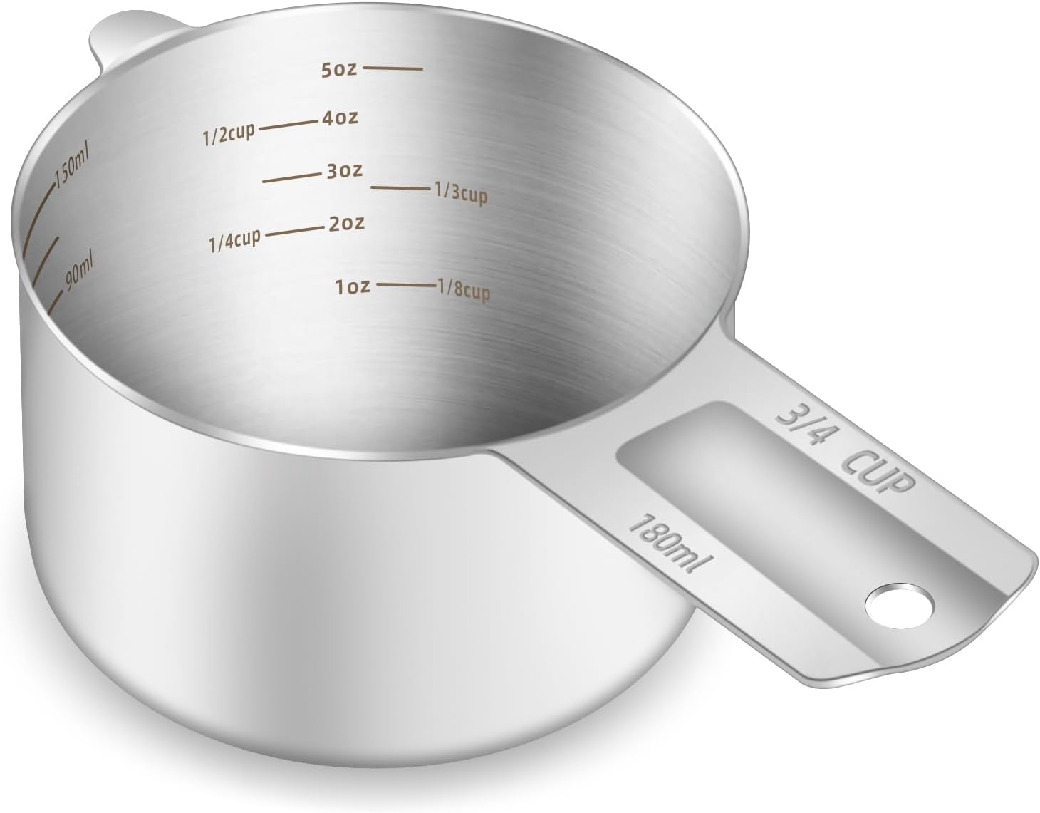 1PCS 3/4Cup (180ml, 6oz) Single Measuring Cup, Etched Inner Scale Stainless Steel Measure Scoop, Metric and US Measurement, Dishwasher Safe