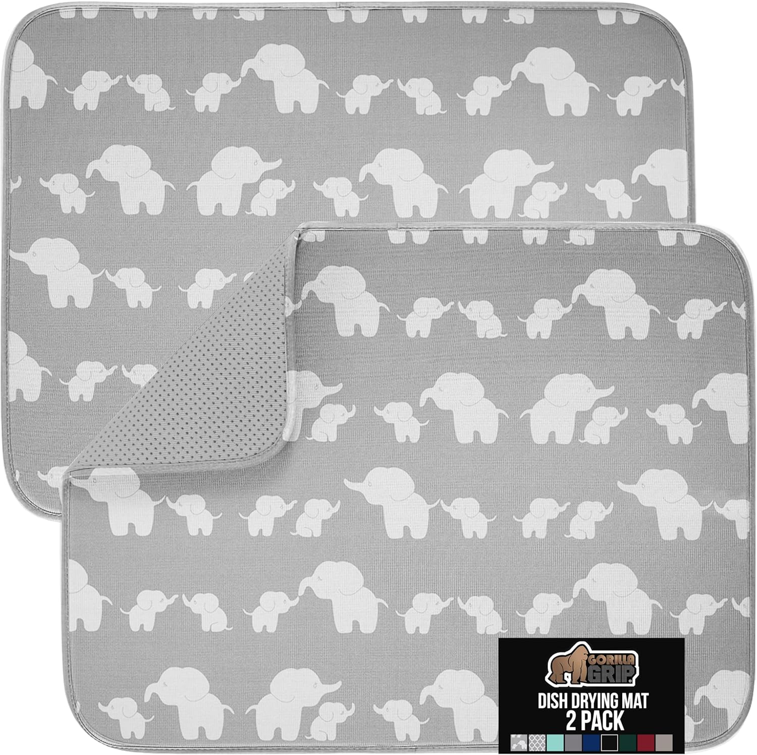 GORILLA GRIP Ultra Water Absorbent Microfiber Dish Drying Mat, 18x24, Quick Dry Mesh, Slip Resistant Pad for Sink Dishes or Under Rack, Kitchen Counter Accessories, Machine Wash, 2 Pack Elephants