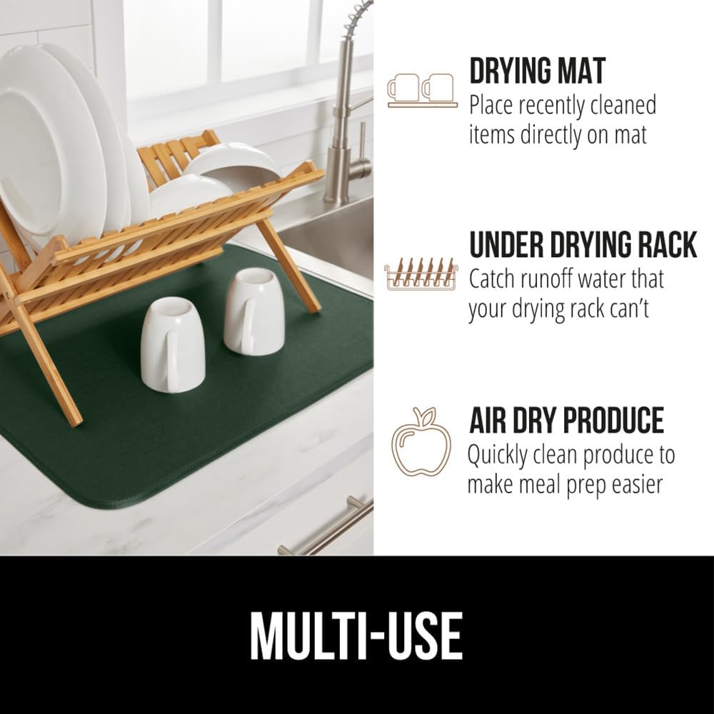 GORILLA GRIP Ultra Water Absorbent Microfiber Dish Drying Mat, Quick Dry Thick Mesh, Slip Resistant Pad for Sink Dishes Under Rack, Kitchen Counter Accessories, 16x18, Machine Wash, 2 PK Hunter Green