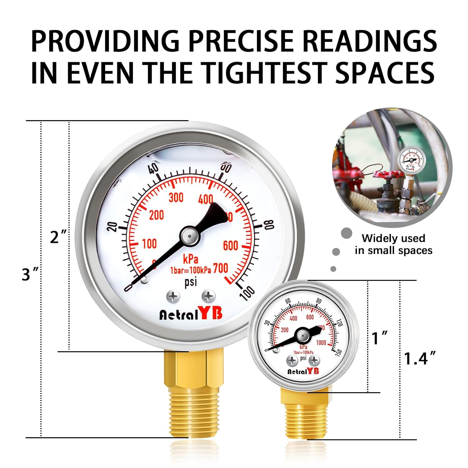 - Dual-Scale Readings (PSI/kPa): 0-150 PSI / 0-1000 kPa scale for accurate pressure monitoring in different units