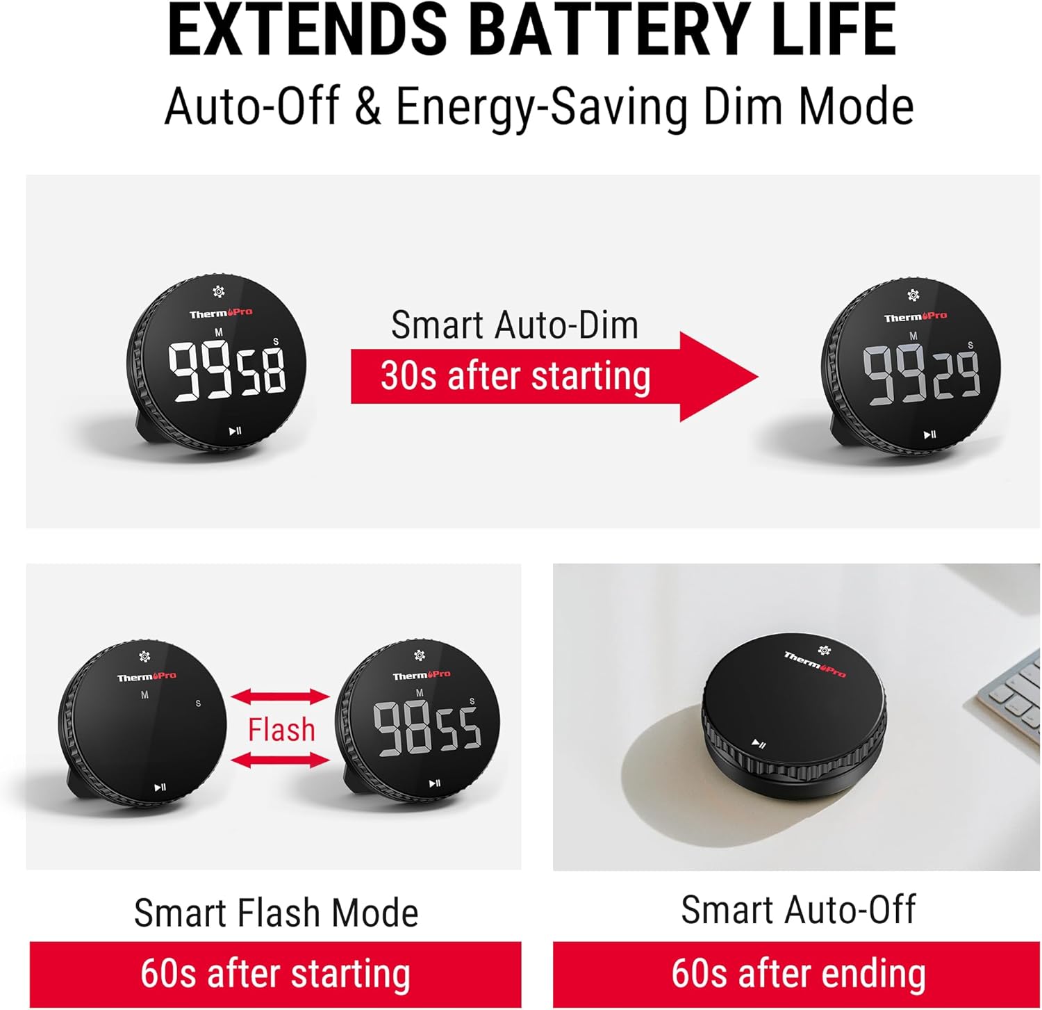 - 【Premium Quality, Perfect Gift & Worry-Free Guarantee】Crafted from high-quality, durable ABS material, this magnetic timer is an elegant addition to any home. It comes with batteries included and makes for a fantastic gift for cooks, students, teachers, and professionals. Backed by our 1-year warranty and friendly customer support.