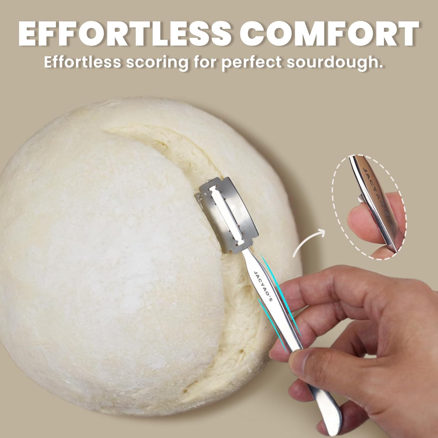 - The Patented Design of The Bread Lame: This lame bread tool has three unique designs, the first of which is a base design to prevent finger cuts from the blade; The second is to shorten the top length of the sourdough lame to reduce the resistance of cutting the dough; The third one is that has been ergonomically optimized for a more comfortable handling experience during use