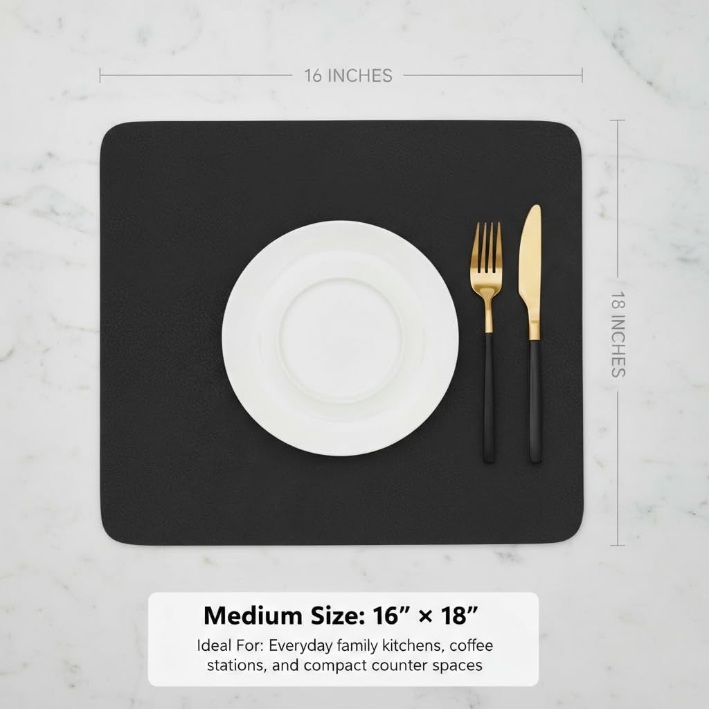 - QUICK DRY & COUNTERTOP PROTECTION – Say goodbye to messy counters with this breathable, fast-drying dish mat for counter. Works as both a coffee bar mat and dish mat drying kitchen mat, protecting wood, granite, and marble surfaces.