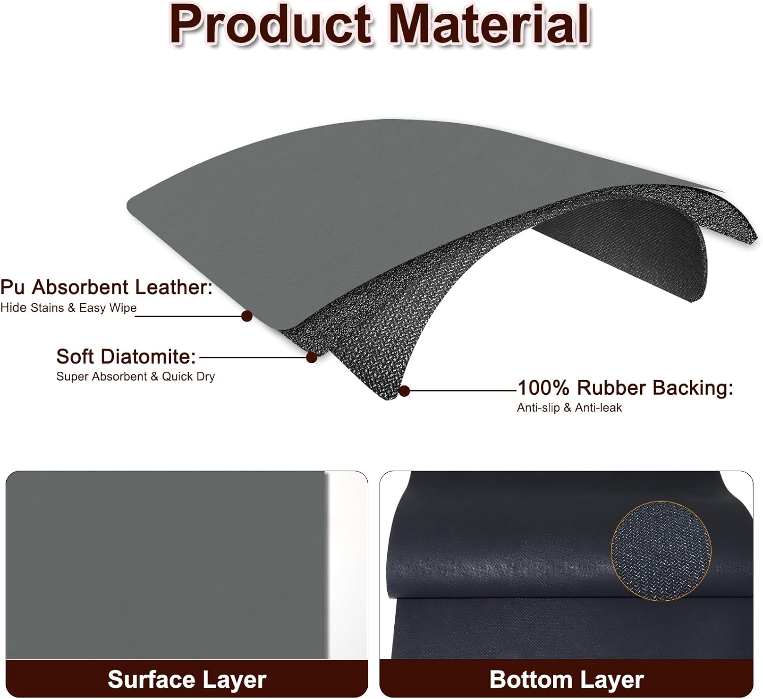 - Anti-Slip & Waterproof Protection: The bottom of this coffee maker mat is waterproof rubber, preventing liquid seepage, safeguarding surfaces from watermarks or stains. Natural rubber-coated base grips countertops securely, preventing slips and protecting appliances from scratches.