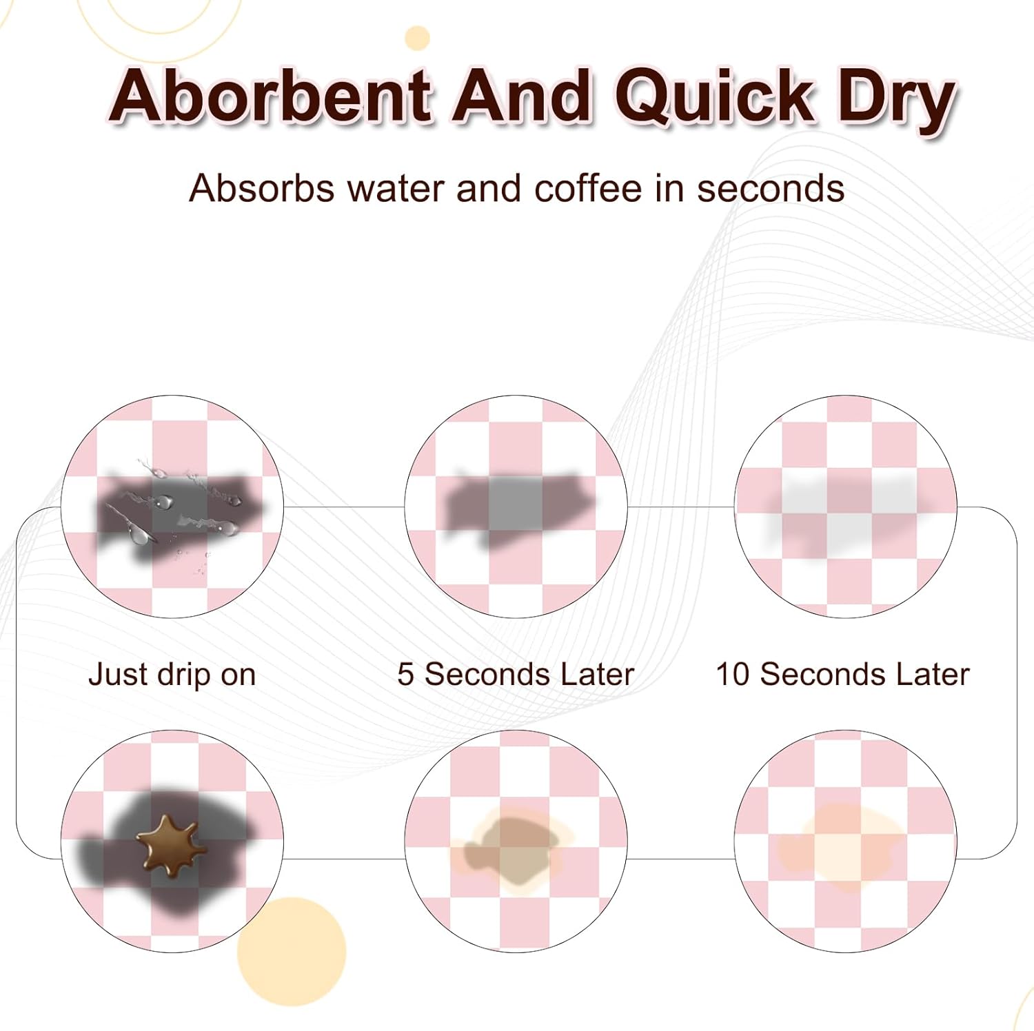 Dish Drying Mat for Kitchen, 15.7'' x 23.6'' Checkered Coffee Bar Mat for Countertops, Coffee Station Mat with Non-slip Rubber Backed, Absorbent Dish Dying Pat for Kitchen Counter, Pink & White