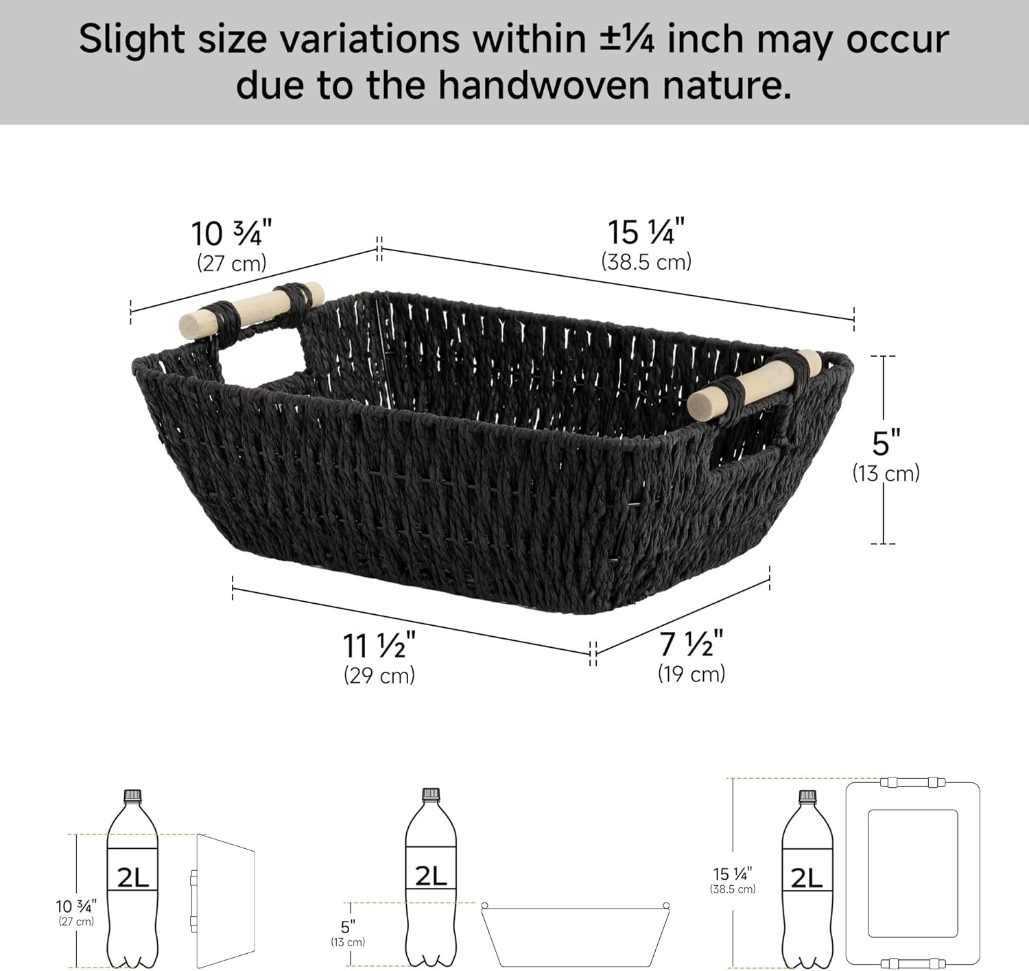 StorageWorks Large Wicker Storage Basket for Organizing with Wooden Handles, Toilet Paper Baskets for Bathroom, Black, 2-Pack