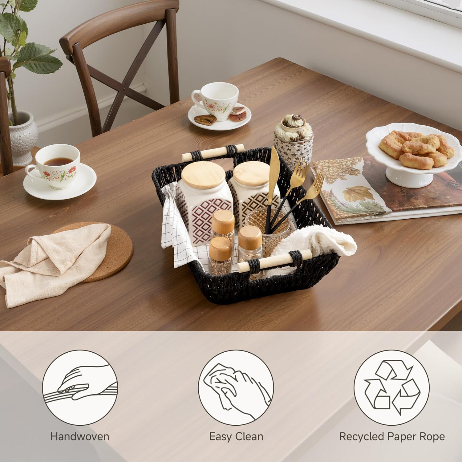 - Recycled Material: Made from durable, recyclable paper rope, designed for long-lasting use and easy recycling, combining storage functionality with a commitment to a low-carbon lifestyle.