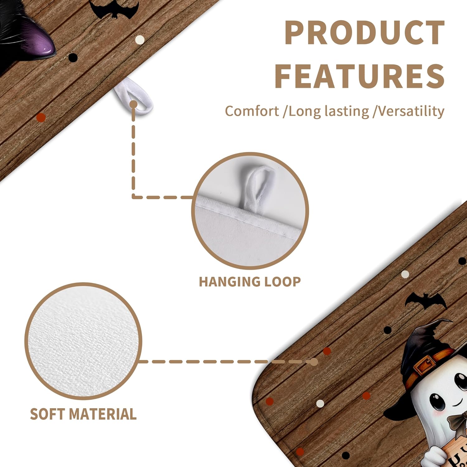 - [Multi-functional]: This halloween large drying mat for kitchen counter can be placed under the dish rack to collect dripping water to keep the counter dry and clean, or you can place bottles, pots, plates, bowls, cups and other utensils directly on the mat.ghost kitchen mat halloween dish drying mat can also be placed under the machine to absorb spilled。