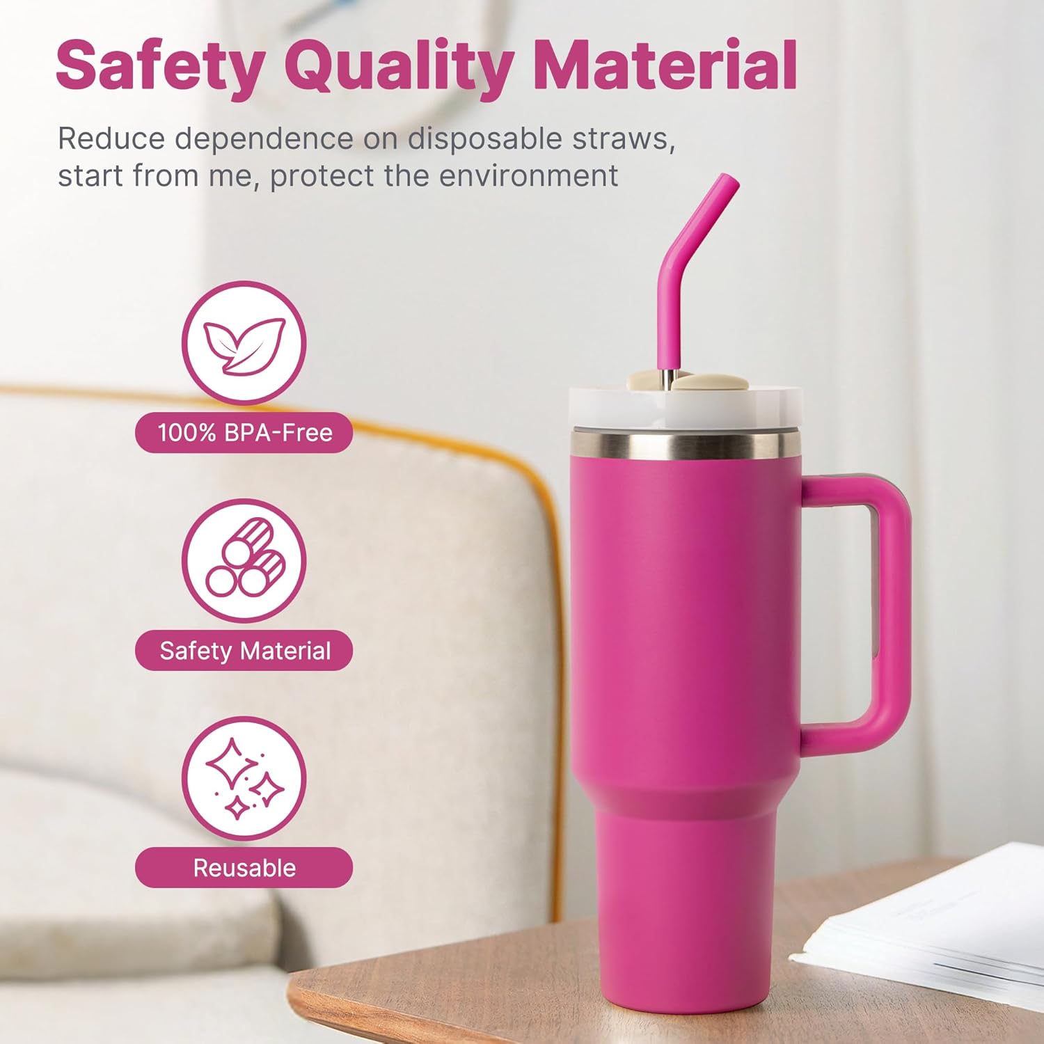 Metal Straw for Stanley 40 oz Cup,Stainless Steel Replacement Straw with Silicone Tips for 40 oz Simple Modern, Meoky, Owala Tumbler, 1 Portable Bag