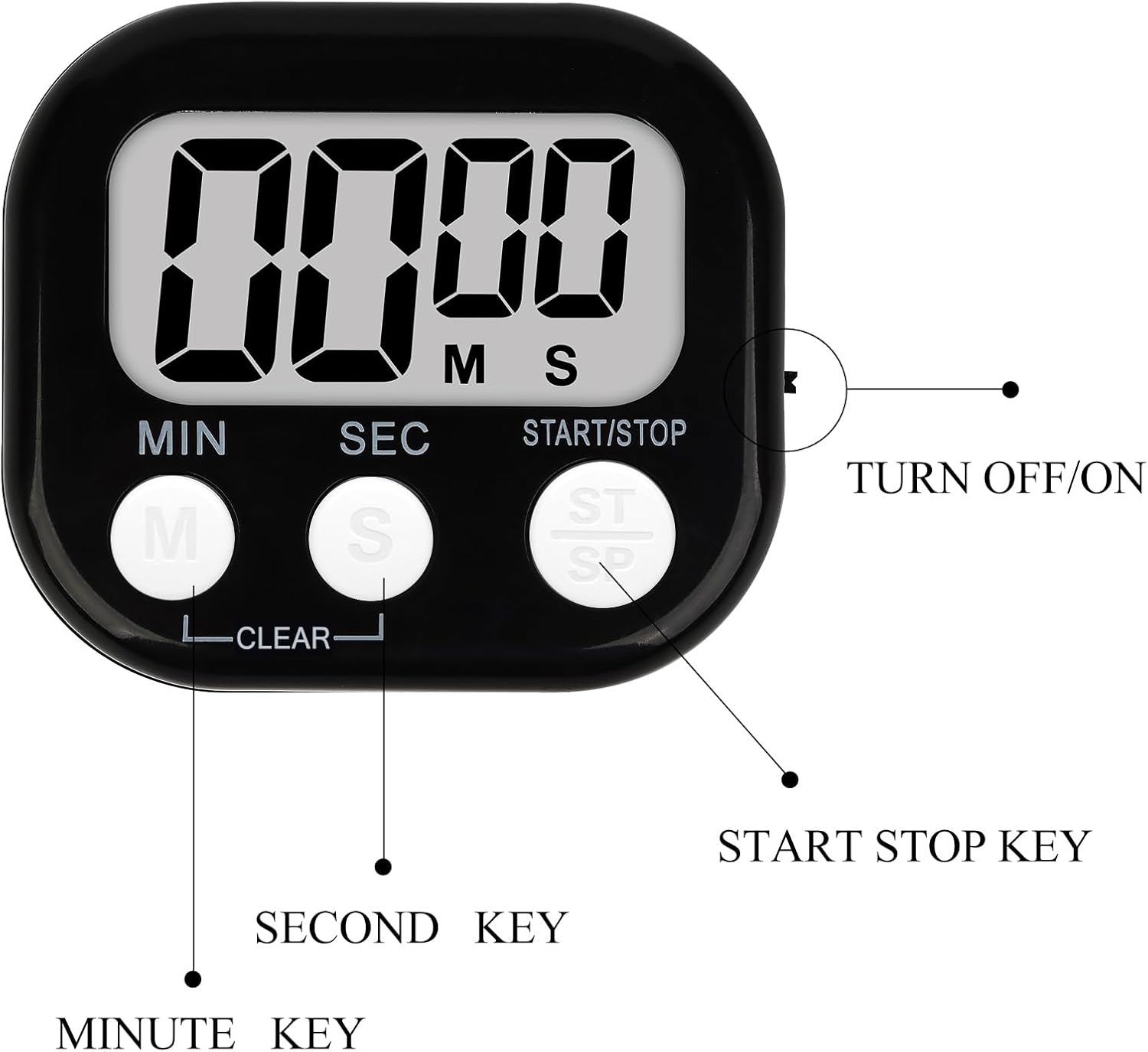 - 3 Black & 3 White Timer: Measures 2.124 * 2.28 ", large screen, large numbers, easy to read.