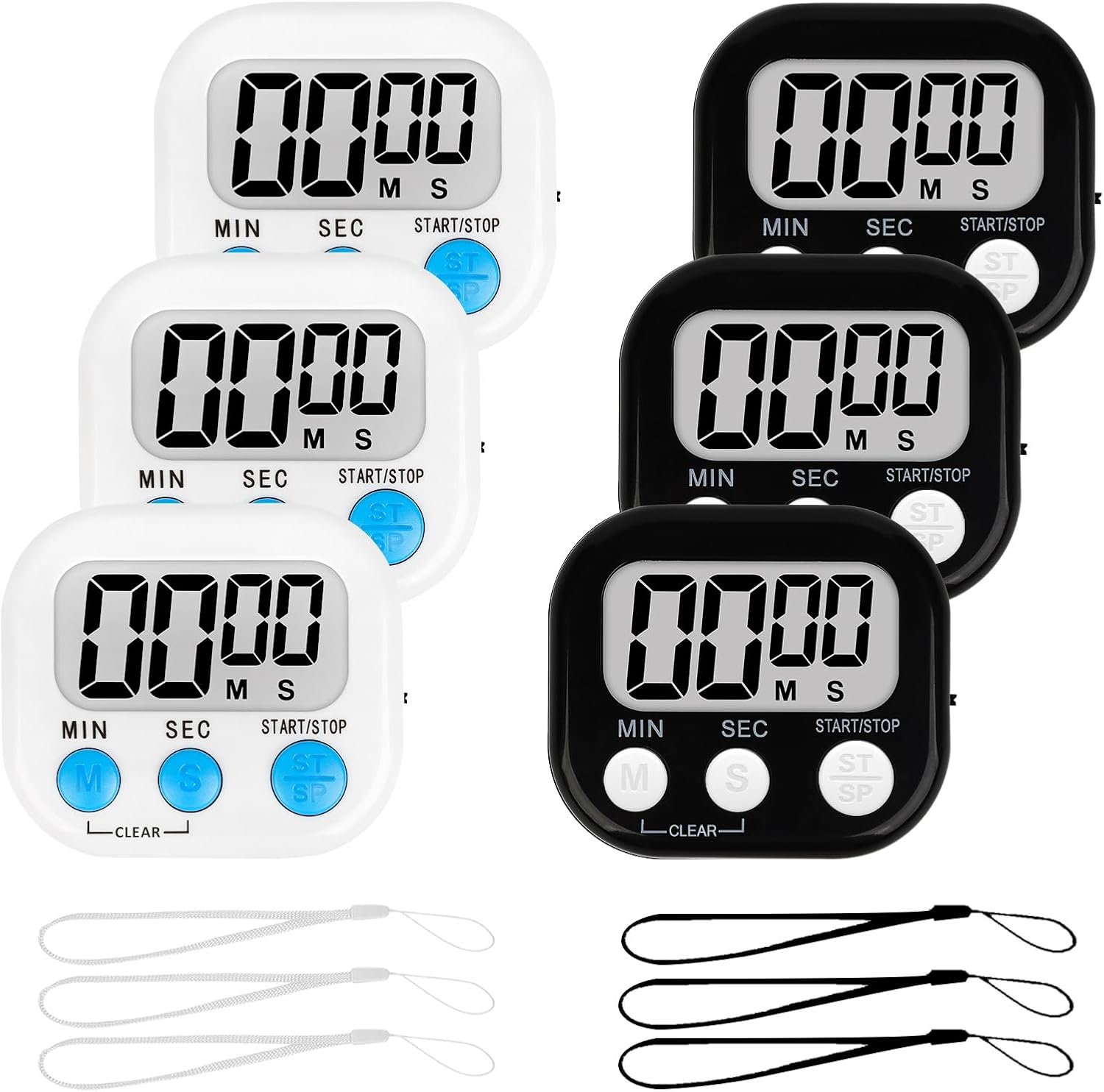 ZILLEEN Classroom Timer for Kids Teachers Digital Timers, Black White 6 Pack