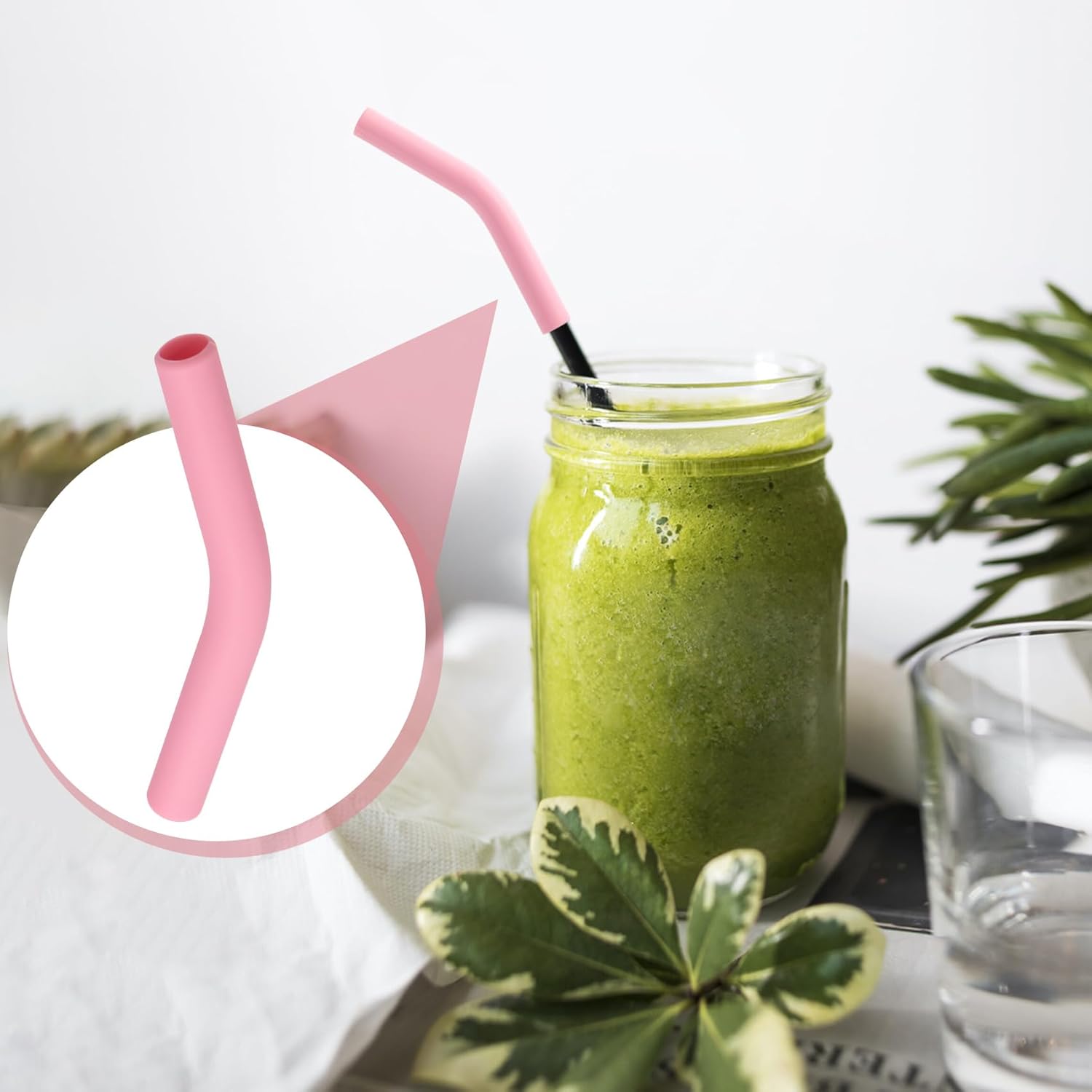 6pcs Food-Grade Silicone Straw Tips, Reusable Metal Straw Elbows Tips, Temperature Resistant Rubber Straw Covers Replacement Tip for 5/16" Stainless Steel Straws - Pink