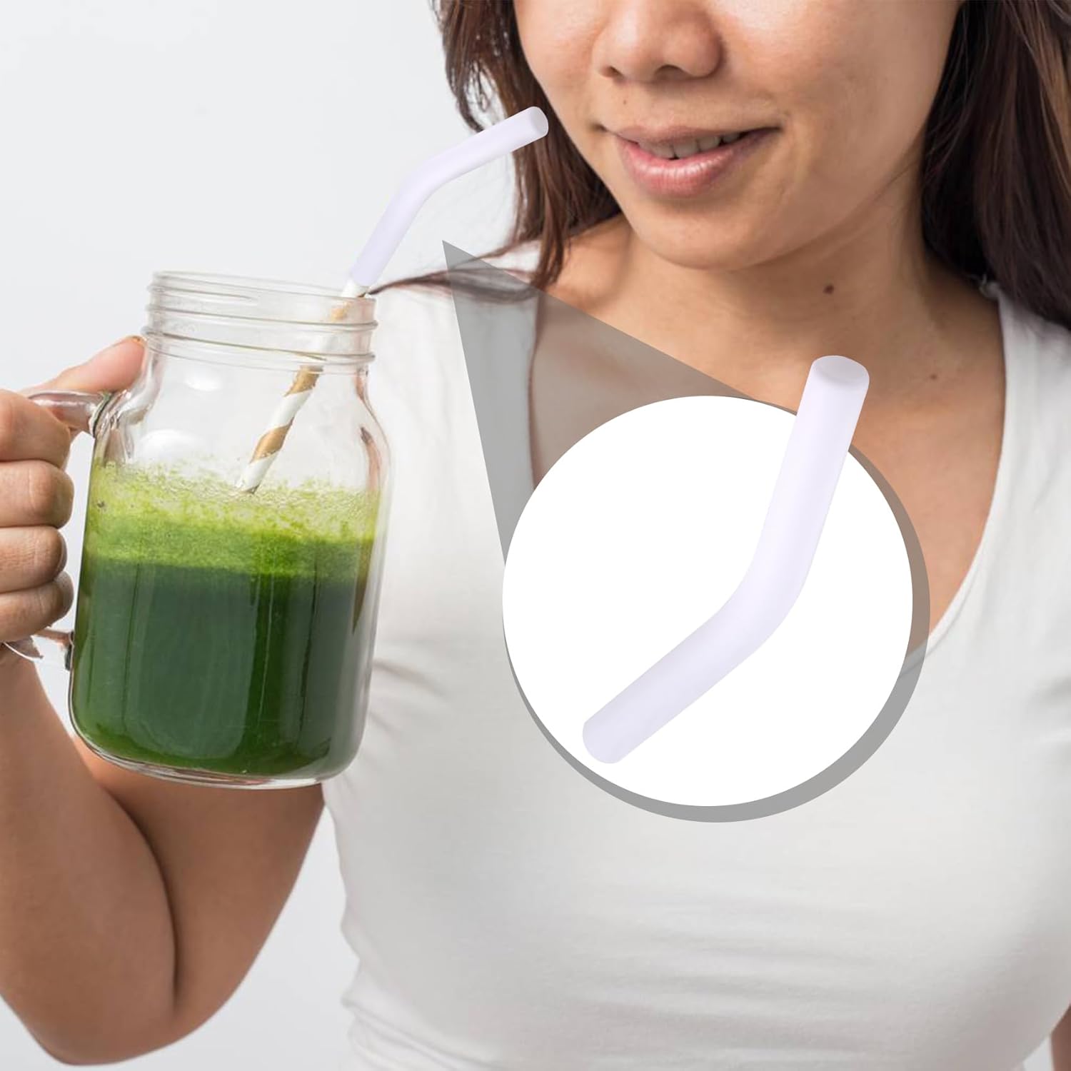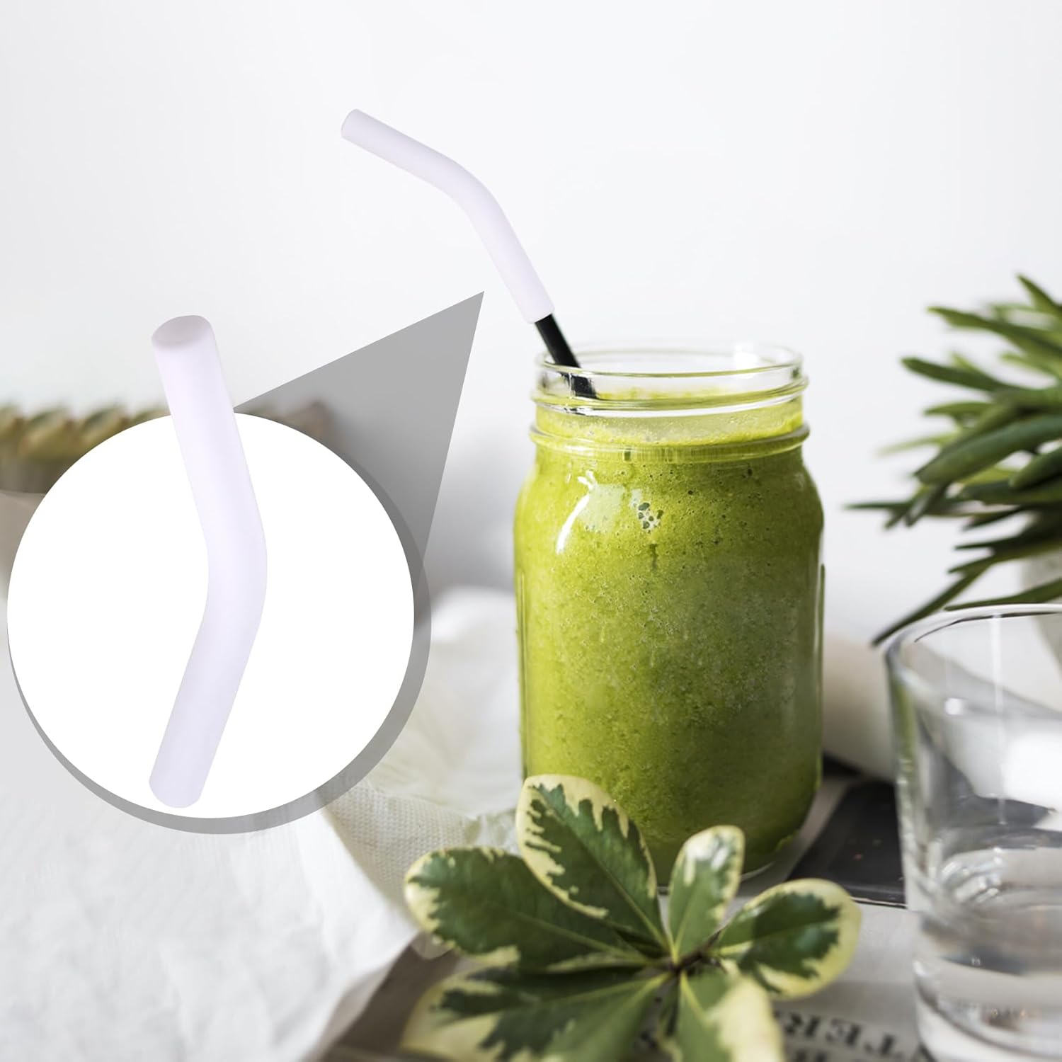 6pcs Food-Grade Silicone Straw Tips, Reusable Metal Straw Elbows Tips, Temperature Resistant Rubber Straw Covers Replacement Tip for 5/16" Stainless Steel Straws - White