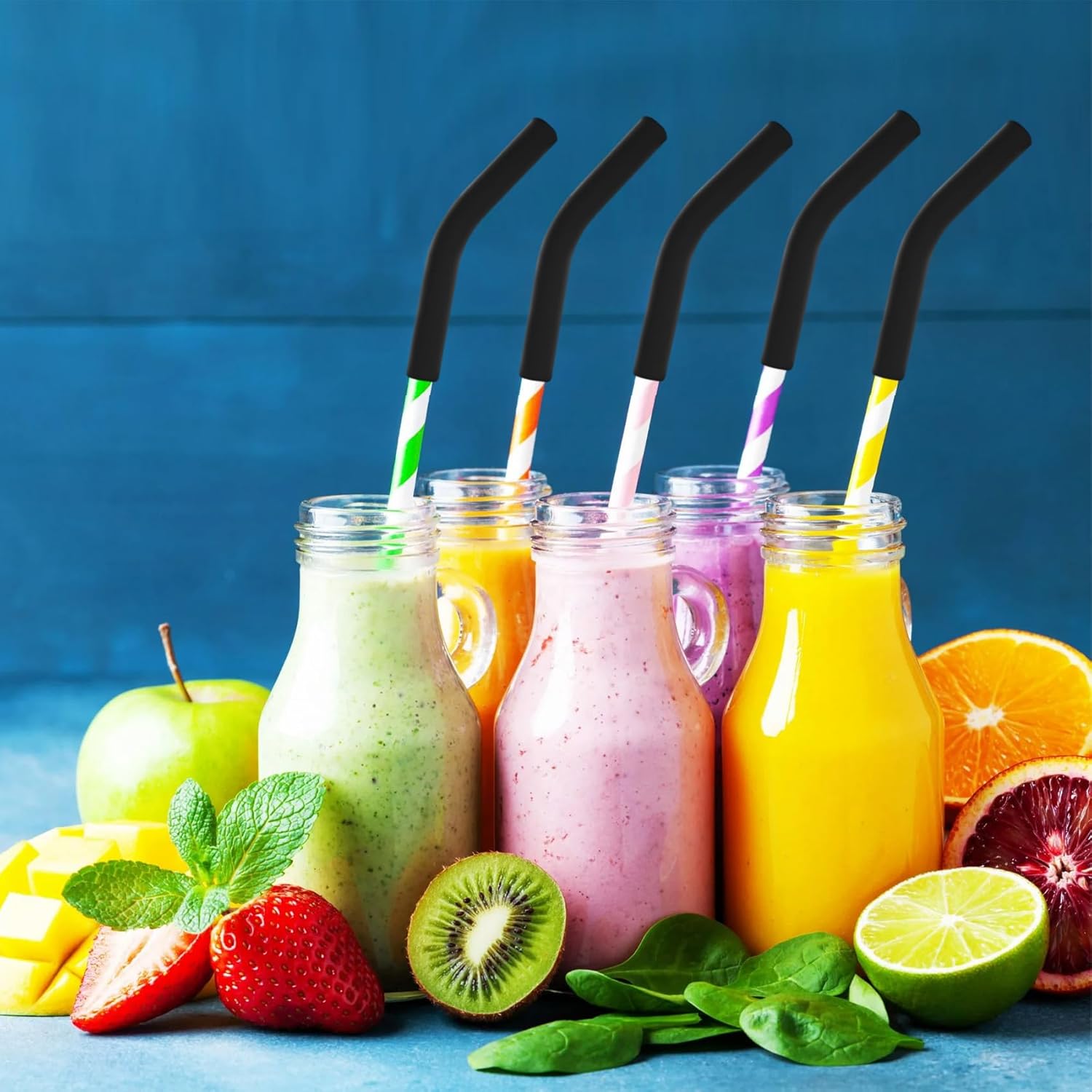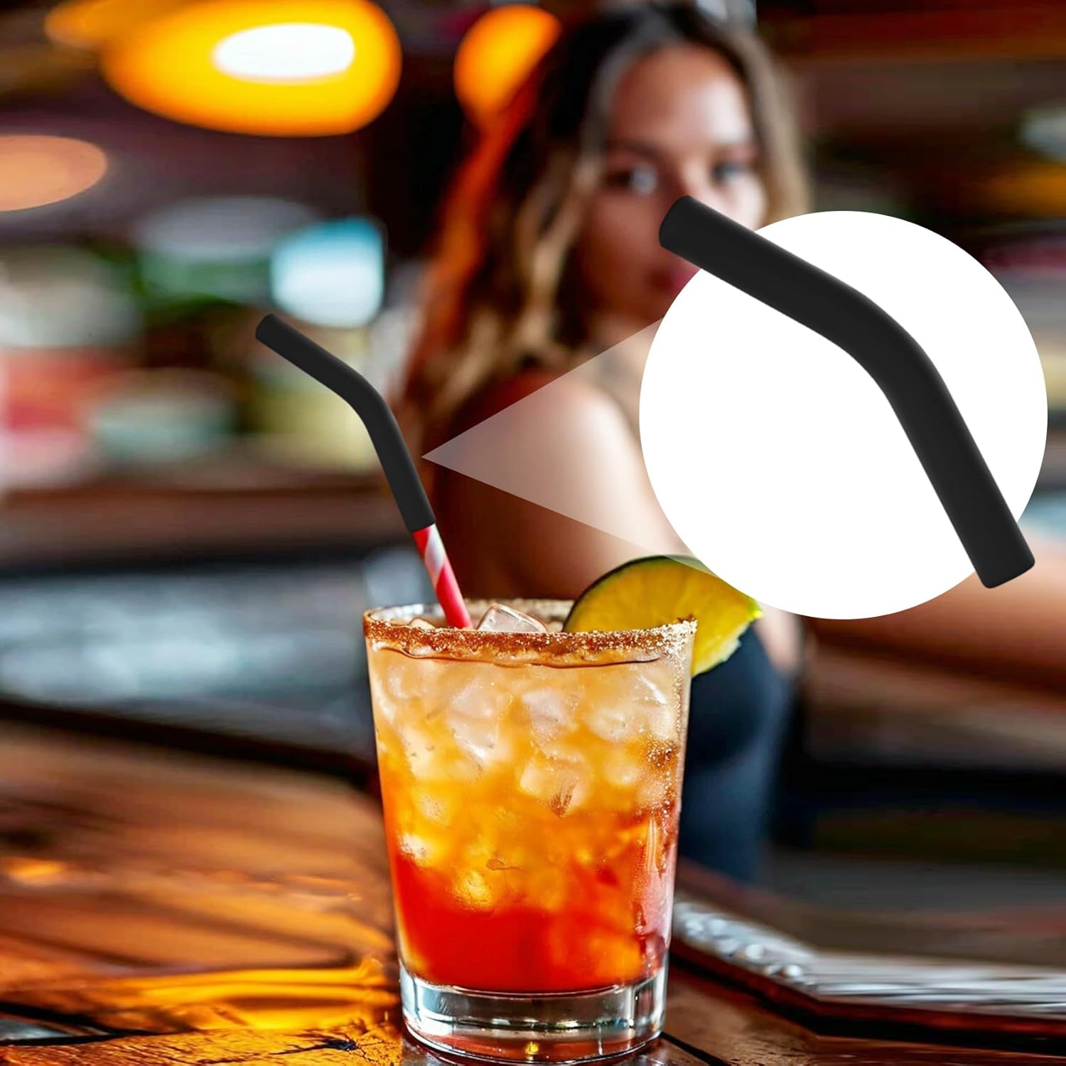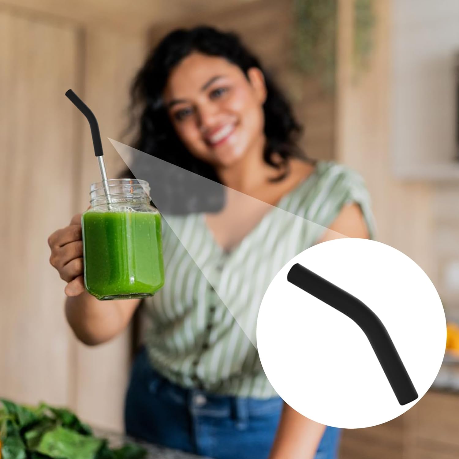 6pcs Food-Grade Silicone Metal Straw Tips, Reusable Flex Elbow Straws Cover Replacement Tips, Soft Straw Toppers Kits for 8 mm Stainless Steel Metal Straws - Black